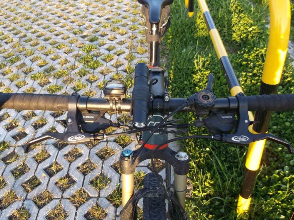 Klamki Avid zamontowane, tylny pancerz też wymieniony na KEB, ale hamulce jakoś zauważalnie się nie poprawiły. Może nawet na klamkach Tektro była nieco większa siła ścisku, choć FR5 mają za to trochę szerszą powierzchnię tam, gdzie układają się palce i klamki trochę mniej brzęczą na nierównościach. Łącznie klamki + pancerz tył dały oszczędność około 65 g wagi.