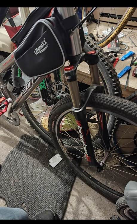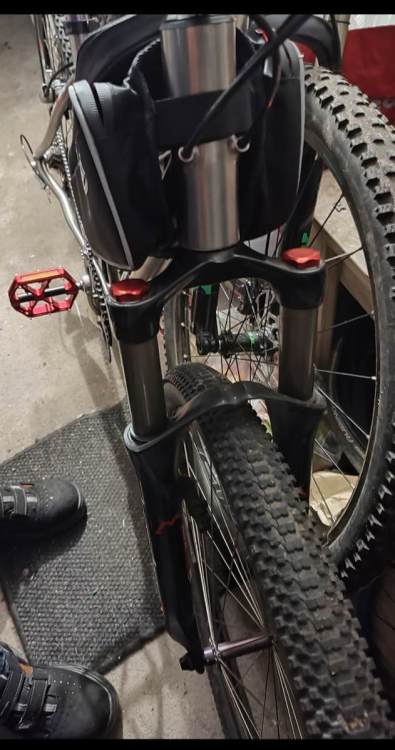 Racja skracanie korby byłoby za drogie. Pomierzyłem te wszytkie widelce i wyszło na to że mogę zamienić jedynie z Sidem albo z Bomberem pod względem sterówki. Więc zdekompletowany XC MTB dostał edge widelec z gravelową oponą. A edge titanbike otrzymał Bombera z 2.1" Kendą SBE i Turbo lekkim kołem 26" Jeszcze tym nie jechałem ale na sucho to rozwiązanie najfajniejsze. Dużo więcej miejsca pomiędzy oponą a pedałami. Jest dodatkowa amortyzacja i przód poszedł do góry - hardtail się zrobił wyjątkowy 😅 Oprócz przodu suport też odkleił się od ziemi - a naprawdę zbyt nisko było przed modyfikacjami. Szybkie fajnie brzmiące opony które do XC się niezbyt nadają, ale do mieszanej jazdy super. Wyważenie zmieniło się oczywiście ale nie wiem czy na plus czy na minus - przód z carbon widłami był niesamowicie lekki, teraz masy tam doszło wiadomo niemało. Jest jeszcze minus bo przewód hydrauliczny od tych magur jest za krótki i nie dam rady podpiąć hebla. I nie wiem jak po przedłużeniu przewodu hamulec spasuje z tym widelcem. Specyficzne ma rozporowe plastiki które muszą być wewnątrz wideł by to działało. Tymczasowo mogę tam wmontować vbrake więc też jest rozwiązanie. Widelec mam od nowości od 2006 roku 😁 700zł kosztował i był jednym z najtańszych powietrznych amorów. W sumie cieszę się że znalazł zastosowanie - 26" HT już nie jeżdzę bo w garażu maszyn przybyły 29" i 27.5" fulle. Zdjęcia dodam w świetle słonecznym później. Dwa w bałaganie na szybkowork in progress - Wczoraj