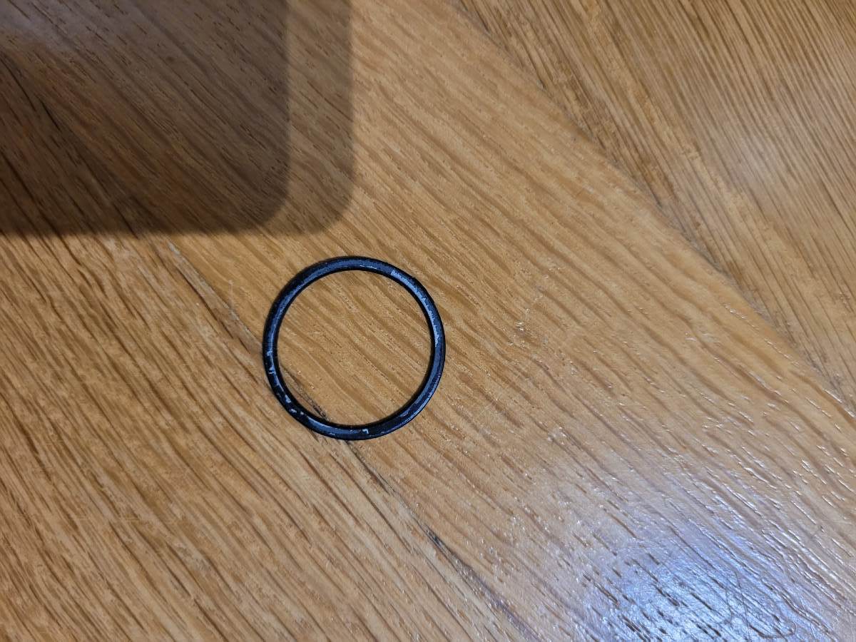 No dobra, po rozebraniu mam taki widok. Lewe ramię wygląda jakby faktycznie w jednym punkcie było mocno wyślizgane z czarnej farby. Z kolei ten oring był założony poprawnie (gumowym rantem w stronę suportu). Od tej metalowej strony też jest lekko wytarty z farby (ale to chyba nie szkodzi), z kolei gumowa strona wygląda na nienaruszoną. Nie wiedziałem co sensownego z tym zrobić, więc wszystko wytarłem do czysta, nasmarowałem oring i gniazdo na niego naprawdę nieprzyzwoitą ilością nowego smaru i złożyłem z powrotem. Pojeżdżę, poobserwuję. Ale mądrzejszy się nie czuję, no jakieś ślady są, ale co konkretnie trze o co i dlaczego, to nadal nie wiem. Odgłos jest "gumowy", ale ślad wytarcia jest na metalu...