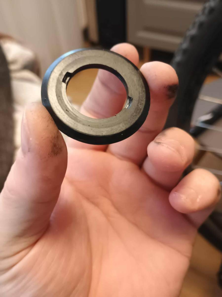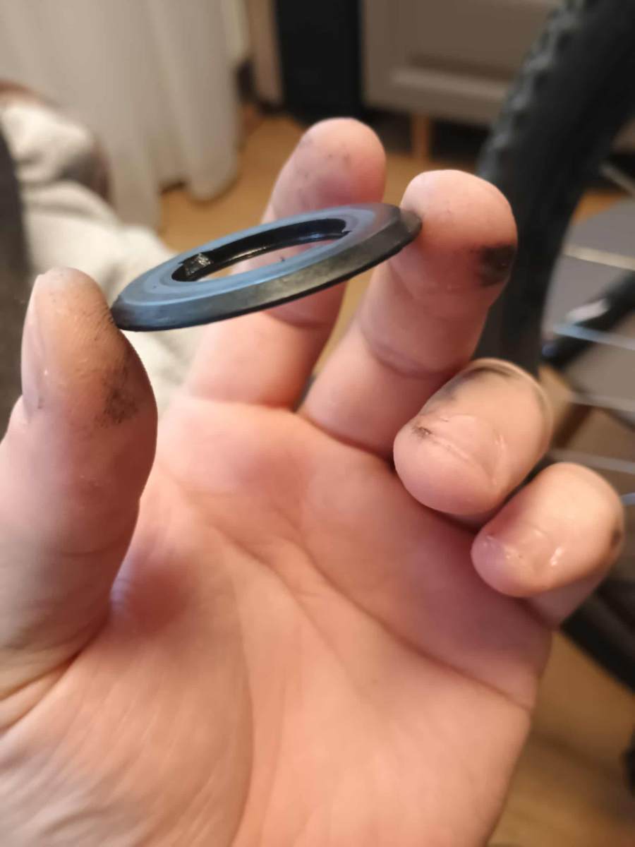 Ta podkładka to jest element jakiegoś starego suportu, jest to osłona i uszczelnienie łożyska. Korba Tiagra z trzema blatami jak i też Sora miały podkładki na ośi korby ale były one dużo grubsze.