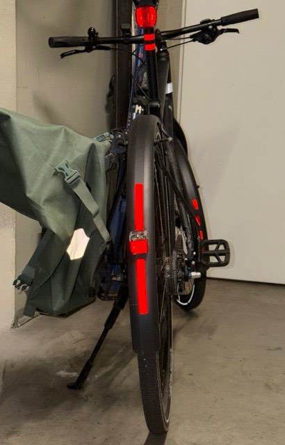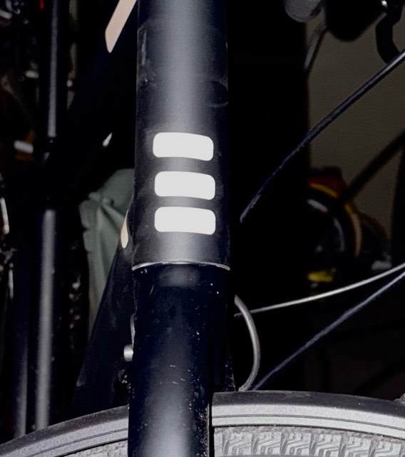Nalepki odblaskowe z Allegro. W naturze mniejsze niż myślałem, ale ładnie świecą te czerwone i ładnie wyglądają (bo w rozproszonym świetle nie widać) te czarne. Teraz mam choinkę. - Dzisiaj