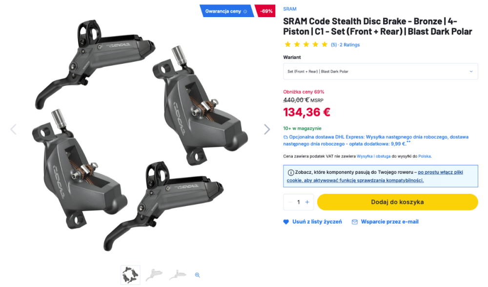 SRAM Code Stealth Disc Brake - Bronze | 4-Piston | C1 - Set (Front + Rear) | Blast Dark Polar https://www.bike24.pl/produkty/740720?sku=2684102