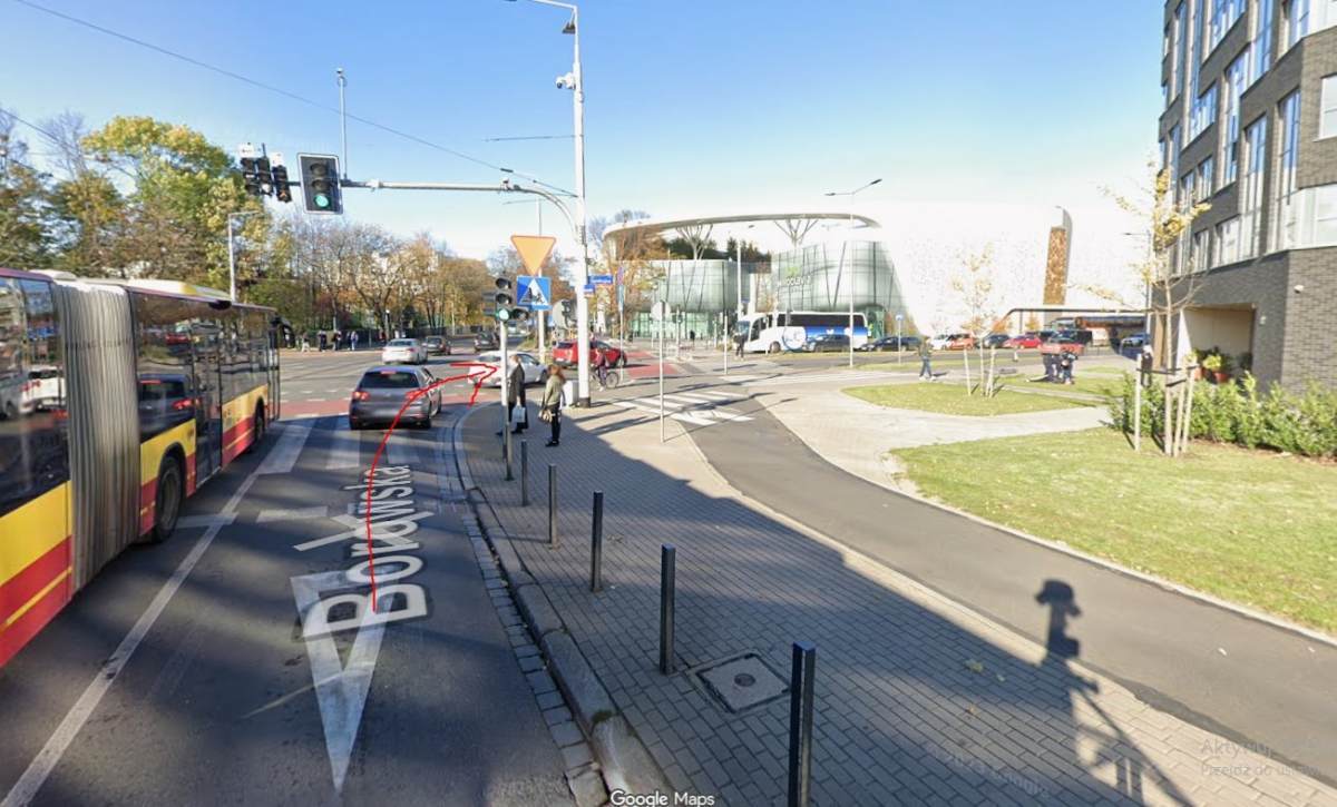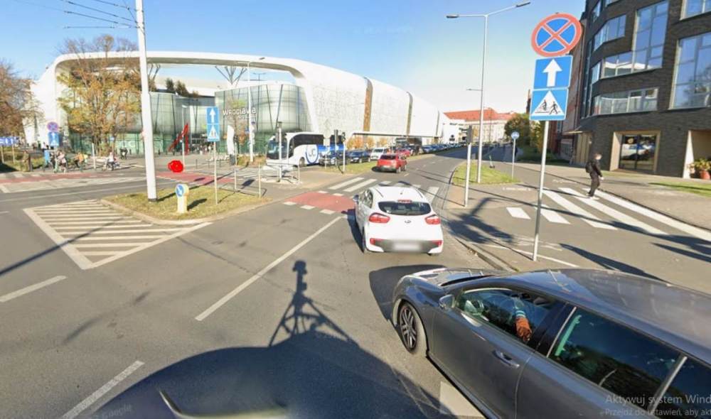 Cześć, Miałem niedawno kolizje z rowerzystą i nie daje mi spokoju, kto w danej sytuacji ma pierwszeństwo. Niestety, nie jestem w stanie jednoznacznie tego ocenić. Czy jeśli ktoś z forum jest na tyle biegły w temacie, mógłby mi lepiej zrozumieć sytuację? Skręcałem samochodem w prawo na zielonym świetle. Przecinałem przejście dla pieszych i przejazd dla rowerów. Rowerzysta i piesi też mieli zielone. Dojeżdżając do pasów, zauważyłem nadjeżdżający rower z mojej lewej strony (od galerii Wroclavia). Gwałtownie zahamowałem samochód, jednak zatrzymałem się ok. 50cm w głąb przejazdu dla rowerów. W tym momencie, jak się zatrzymałem rowerzysta był mniej więcej w okolicach wjazdu na pierwszą jezdnię (przed nim jeszcze wysepka i druga jezdnia). Mój pojazd stał nieruchomo, oceniam, że 3-4sekundy. W tym czasie rowerzysta przejechał pierwszą jezdnie, wjechał na wysepkę i dopiero zorientował się, że tam stoję. Niestety rozpoczął hamowanie bardzo późno, a ze względu na dużą prędkość doszło do uderzenia w samochód. Na drugim zdjęciu, pokazałem pozycję rowerzysty jak zahamowałem pojazd. Mój samochód stał mniej więcej jak białe auto na tym zdjęciu. Czy w tej sytuacji ponoszę winę ze względu na nie ustąpienie pierwszeństwa, wina jest po obu stronach (dla mnie za zatrzymanie się na PDR a dla rowerzysty za nie zachowanie szczególnej ostrożności i brak wyminięcia pojazdu który już był na przejeździe), czy wina jest po stronie rowerzysty, który nabywa pierwszeństwo dopiero jak pojawia się na wysepce lub jezdni na której doszło do kolizji? Będę wdzięczny za pomoc.