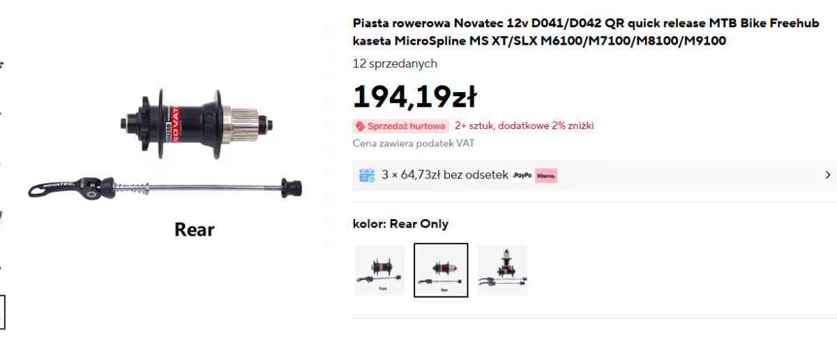 Na Aliexpress piasta jednak ponad 100 zł. Poszukiwania koła przenoszę do nowego wątku. -