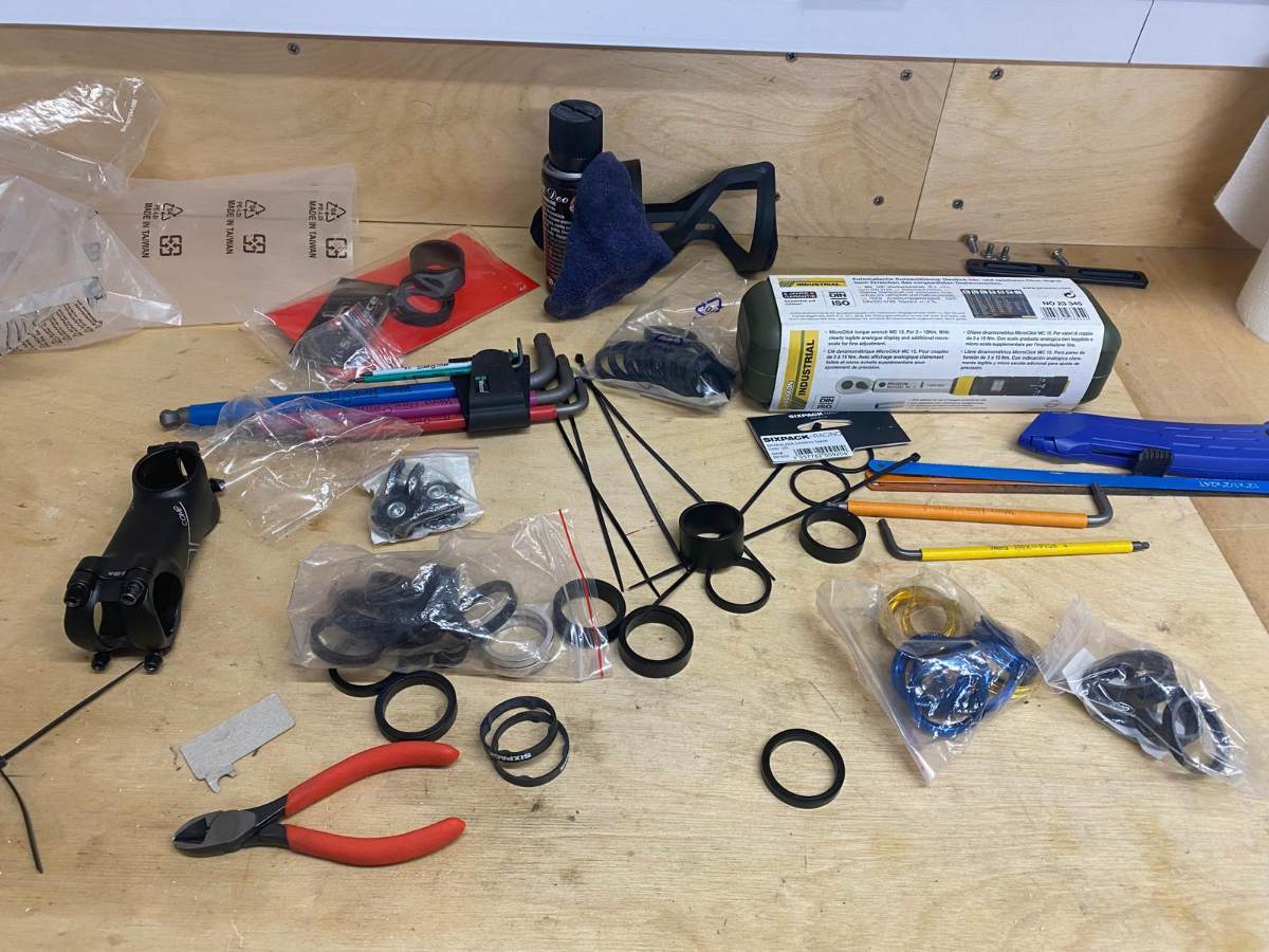 Gmeranie przy kokpicie gravela miało miejsce. Efekt taki (chociaż mam wrażenie że na żywo wygląda lepiej): Najwięcej czasu zeszło na finalny dobór podkładek pod mostek, na szczęście lub niestety miałem jakiś wybór.. Finalnie wybrane karbonowe, lepiej pasowały kolorystycznie od również karbonowych Ritcheyów i alu PRO.. Opócz tego pierwszwe w życiu cięcie karboniu (zgodnie z zaleceniami z @Punkxtr z fimlku na youtubowym kanale Serwisu Bajka) - Wczoraj