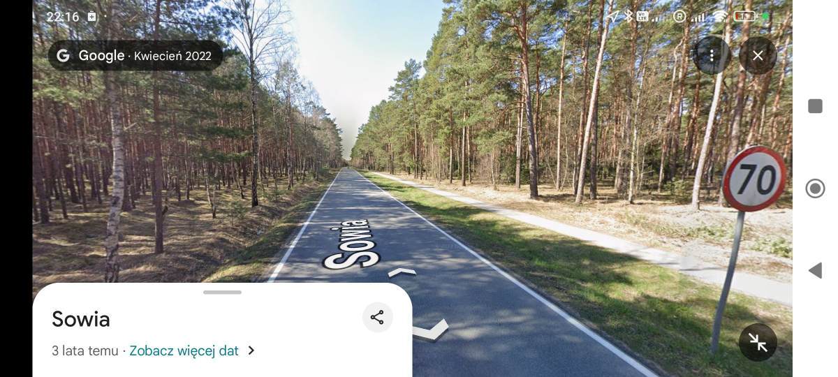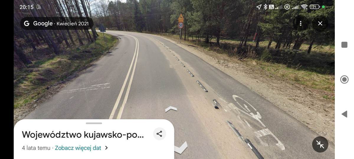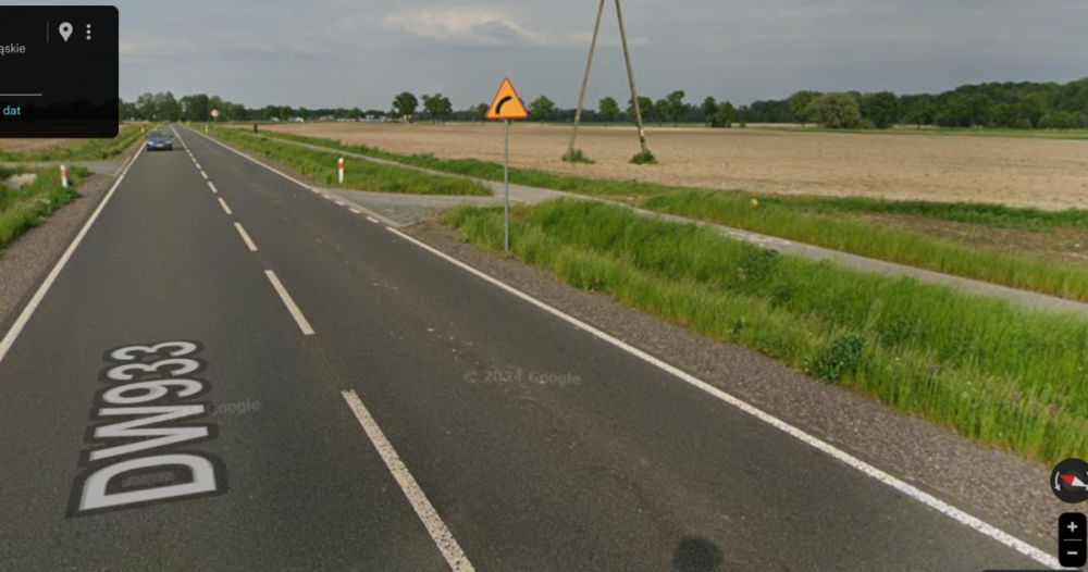 Dzisiaj o tym rozmawiałem z Żoną jadąc samochodem i widząc nową ścieżkę wybudowaną wzdłuż ruchliwej drogi, na istniejącym rowie odwadniającym, za bardzo grube pieniądze (pod DDR jest położona kanalizacja deszczowa, to robi koszt). Na prawo i lewo hektary pól rolniczych, można budować lotnisko na tym. No więc ruch na drodze jest naprawdę duży a droga prosta więc kierowcy sypią. Na tej drodze znajoma straciła życie bo siatki z zakupami ściągnęły ją pod ciężarówkę. Jest duże ryzyko, że na tej nieoddzielonej DDR stałoby się podobnie. Z drugiej strony głupi manewr kierowcy i przejedzie po tobie bo oddziela nas 10 cm krawężnika. Jak w spokoju jechać takim DDR z mniejszymi dziećmi albo puszczać je do szkoły?? Tymczasem kilka kilometrów dalej, nowa ścieżka poprowadzona po polach, ZA rowem odwadniającym, dużo taniej i dużo bezpieczniej bo dalej od jezdni (screen poniżej). Uwierzcie mi, że jakość jazdy nie do porównania. W terenie zabudowanym nie ma to znaczenia ale przy drogach gdzie jeżdżą stówką i więcej to jest mega różnica. -