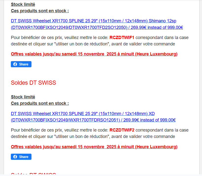 Nie zaprzeczam (zwłaszcza słowom Moderatora ) - ostrzeżenia i disclaimery jak najbardziej pozozstają w mocy (pokrótce: jak karta to wirtualna/jednorazowa, wysyłka długa, zdarzają się anulowania zamówień, pakowanie losowe - raz super raz jeży włosy na głowie, zwrotów i reklamacji na szczęście nie ćwiczyłem ale nie chciałbym, zdarzają si pomyłki typu wysyłka, są to części OEMowe więc trafiają się np. jakieś customowe kolory/naklejki, droga wysyłka do PL i brak możliwości łączenia zamówień z różnych kodów itp itd ). Kody do północy (+ wysyłka 40 EUR )