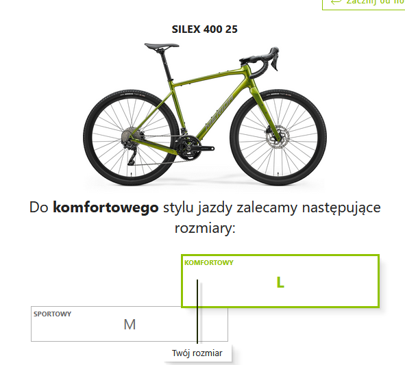 Hejka forumowicze, planuję zmienić rower i zakładam, że będzie to przesiadka z wysłużonego trekkinga krossa transa 5.0 na gravela. Dlatego w tym temacie chciałbym się spytać właśnie jak to jest z geometrią tych nowszych Silexów 400. Strona producenta podpowiada, że bardziej komfortowy będzie dla mnie rozmiar L. Długość nogi, mierzona od okładki książki przy kroczu wyszła mi ok. 87 cm, długość ramion niecałe 60 cm, wzrost 181cm, kalkulator Meridy podpowiada, że w sumie jestem na granicy rozmiarów i że bardziej komfortowy będzie rozmiar L. No ale w sumie jak przy tych parametrach zjadę w kalkulatorze rozmiarów do wzrostu 180cm, to nawet nie bierze L pod uwagę jako komfortowego i od razu proponuje M, więc dosyć dziwacznie to działa. Do tej pory testowałem jednego Gravela i był to decathlonowy Triban GRVL 520 Subcompact rozm. L (stack 603, reach 395 mm - stosunek ok. 1,53). Zrobiłem na nim od ręki 80km, no i pod koniec czułem lekki dyskomfort w karku, a klamkomanetki musiałem jak najmocniej przybliżyć do siebie, żeby w miarę ich używać (choć brakło kilku milimetrów, żebym miał wygodny zasięg do hamulców), więc myślę, że miałem trochę za daleko kierownicę. Co prawda, niezależnie od wersji, w przypadku Meridy stack:reach wynosi ok. 1,47, ale jest to rekompensowane dłuższą ramą oraz krótszym mostkiem, co ma sprawić, że ten rower powinien być w miarę wygodny przy przesiadce na rowery o gravelowej geometrii. W internecie znajduję sprzeczne informacje na temat tego którego brać - jakiś ekspert się wypowie i doradzi? PS - w przypadku rowerów z Decathlonu można w jasny sposób przetestować rower - a gdzie mógłbym przetestować jak mi leży Silex? Ktoś może wie czy jakiś sklep rowerowy w Poznaniu lub okolicach udostępnia klientom możliwość przetestowania wygody jazdy? Pzdr -