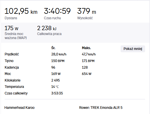 No i pojechałem pierwszą setkę z nowym setupem. Masakra, zupełnie inny rower, nie podskakuje tak bardzo dzięki temu przy zjazdach jest dużo bardziej stabilniejszy i można mocniej dokręcić. Na ujowym asfalcie mega różnica, jakbym jechał innym rowerem, czuć jak sztyca pracuje nie trzeba tak bardzo zwalniać, nic nie wyszło mn iej boli. Co do oporów toczenia to chyba jest bez różnicy bo wykręciłem lepszy czas na 100km niż wcześniej. Bez kitu nie spodziewałem się aż takiej różnicy. -