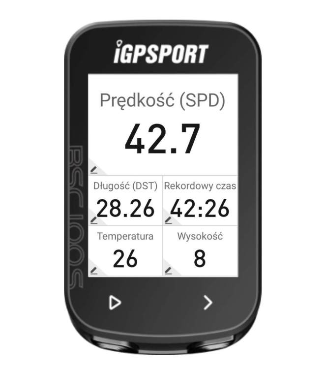 @chudzinki Temperatura w BSC100S jest. Jest możliwość konfiguracji co ma być wyświetlane na stronach ale jest ona dość ułomna i nie wszędzie, nie w każdym polu da się wstawić dowolne dane, np. temperatura jest możliwa do ustawienia tylko w niektórych polach a w innych polach nie. Jest też stały podział wyświetlacza na 5 pól i jak chcesz tylko godzinę, temperaturę i prędkość to albo w innych polach ustawiasz puste pole albo wyświetlasz coś innego, typu dystans, wysokość n.p.m., nachylenie czy dane z czujników (tętno, kadencja, moc). Tu masz przykładowy widok: Nie widać tego na screenie z apki ale w górnej części wyświetlacza zawsze jest wyświetlana godzina, stan baterii i łączność (Bluetooth, wifi)