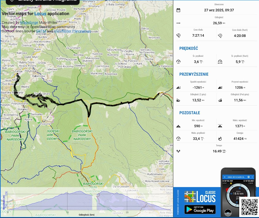 Hmmm... Kocią Łapę 🙃. Jak po urwaniu przerzutki powiedziałem młodej, że dla mnie to już koniec jazdy na dzisiaj i jak zobaczyłem jej minę (moja też była nietęga zapewne) to stwierdziłem, że nie mogę jej tego zrobić. A że chodzę dość szybko i świadomość, że od Mosornego do samochodu będzie z górki to stwierdziłem, że kontynuujemy 💪. Zaplanowane było generalnie do Urwanicy, ale skończyło się na Kociej. Przy Policy miałem mały dylemat, ale po przeliczeniu stwierdziłem, że ogarniemy do zmroku. Nie nagrało jakiś 900 m: -