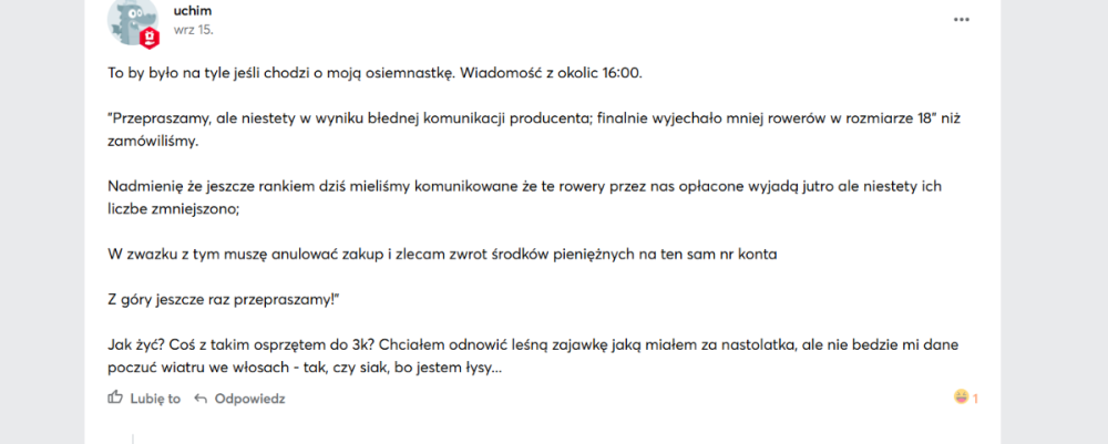 nossy odpowiedział Bruno_Bronkx → na temat → Jaki rower kupić do X złotych?