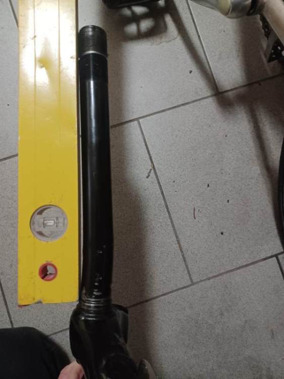 Witam. Tak jak w temacie po zdemontowaniu starów okazało się że rura sterowa w przednich widełkach jest skrzywiana. Tera pytanie, czy można wyprostować na gorocą to skrzywienie używając np. o małego palnika itp. czy wymienić na sprawny widelec(amortyzator). A jaki wymienić na sprawny to jak dobrać prawidłowy ? Srednica rury sterowej fi :~25,5mm, Długość rury sterowej: ~235mm, gwint zew: ~25.3mm, gwint wew:~24,4mm, srednica zewnętrzna bieżni: ~27mm (z gwintem)