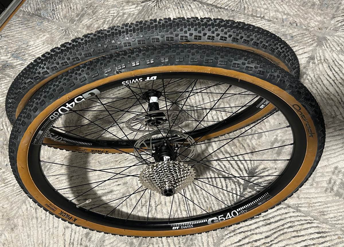 Wrzuciłem koła na centrownicę i zrobiłem, co należy, poczem wyposażyłem w resztę akcesoriów, no i gotowe do wbicia w gravel (jak skończy się aktualna epoka lodowcowa). Składniki: Z Bike-discount: - piasty DT Swiss 350 (okazało się, że oni mają je najtaniej, ale generalnie poza PL wszędzie było taniej, tylko u nas wyrąbali ceny w kosmos) - obręcze DT Swiss G540db (od tego się zaczęło, obręcz po 14 eurosów była, no żal nie kupić) Z Alledrogo: - szprychy CN Spoke 2 mm (miały być okrągłe J-bendy i czarne) - nyple Sapim 12 mm stalowe (to też eksperyment, lżejsze od mosiądzu, trwalsze od alu) - kaseta Shimano CS-HG700 11-rzędowa 11-34 (akurat najtaniej było na Allegro) - dętki Schwalbe SV17 28/47-622 60 mm (przegiąłem z długością wentyla, to fakt) Z Alitanio: - tarcze Zrace CL (wziąłem co po torach leciało, byle miało zakrętkę do CL, nawiasem mówiąc ta zakrętka taka plastikawa) - opaski na obręcze Pinmoap (szukałem czegoś szerszego niż 15 mm) - opony Ontrack X-Pack 622x45 (a byłem ciekawy no i chciałem coś z brązem, bo kobiety lubią brąz Zakupy na Ali to taki eksperyment procesowy, a nuż to okaże się dobre? Jak będzie niedobre, nie stracę wiele. -