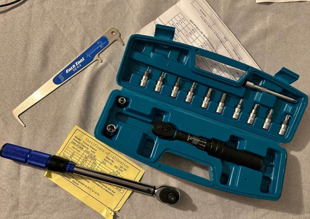 Dwa klucze dynamo przyszły przypadkiem. Toi znaczy przypadkiem przyszły razem, bo zamawiałem osobno. To chińskie. O ile ten większy to 5-60 Nm (i większy kwadrat, bo 3/8 cala) i jego wiarygodność potwierdza fakt wypisany na żółtej kartce: "Inspector Approval: Adonis" Ten mniejszy to maleństwo 1-6 Nm, mam nadzieję na większą dokładność, nie tylko wynikająca z zakresu, ale i firmy. Firma Libraton oferuje gamę ładnie wyglądających narzędzi, spójne kolorystycznie, robią w rękach dobre wrażenie, no i tym razem "Checker: Ran xiao juan" jest dla mnie bardziej przekonywujący, niż Adonis Któregoś Libratona w swoim wielkim teście kluczy dynamo uwzględnił youtuber Król Rowerów i chociaż metodologia testów nie była idealna, to w porównaniu z markami bardziej lub mniej wiodącymi (testowanymi tymi samymi metodami) Libraton się nieźle bronił jako budżetowa wersja. A cóż do domowego niekomercyjnego warsztatu się nadaje bardziej, niż budżetowa wersja? Oba klucze klikają w obie strony. Park Tool CC-4.2 nie przybył z Chin (mam taką nadzieję) i od razu ciekawy bardzo porównania przymierzyłem go ze starszą wersją CC-4, tyle że ta stara wersja jest według mnie 100% chińską podróbką (3x tańszą). Musze powiedzieć, że wykroje pasują do siebie idealnie, tylko 4.2 ma większy zakres (trzy stopnie włażenia w łańcuch versus dwa wersji 4). -