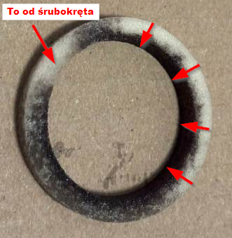 Dzięki, trochę roboty jest, ale wynagradza to satysfakcja. Ciężko to określić, suche w znaczeniu - po ściśnięciu w tych miejscach nie widziałem oleju, ale możliwe, że został mikro film. Moja teoria jest taka, że podczas pracy amortyzatora olej z gąbki jest zasysany w kierunku jej wnętrza. Ładnie to widać na krawędziach. W jednym miejscu gdzie nie ma w ogóle to od śrubokręta i podważania. Dodałem zdjęcie, żeby lepiej to zobrazować co mam na myśli. Później śladowa ilość oleju wychodzi na zew. amortyzatora., a po czyszczeniu po jeździe "znika"