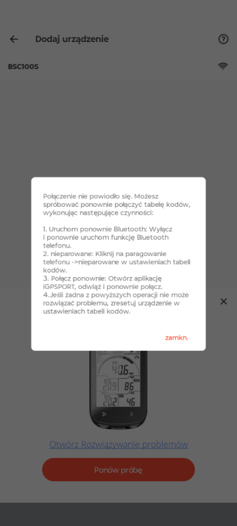 Podepnę się z prośbą o pomoc do BSC100S, paruje z aplikacją na Androidzie IGPSPORT 7.x ale nie zrzuca trasy ( nie mogę znaleźc opcji), a na IGPSPORT Ride w ogole nie paruje...