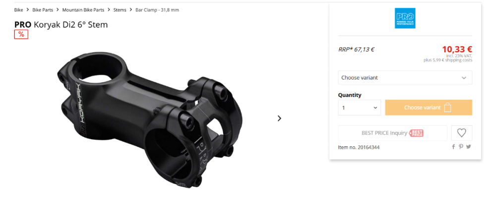 Mostki Koryak 80-90-100mm kolejne 5EUR w dół.. https://www.bike-discount.de/en/pro-koryak-di2-60-stem