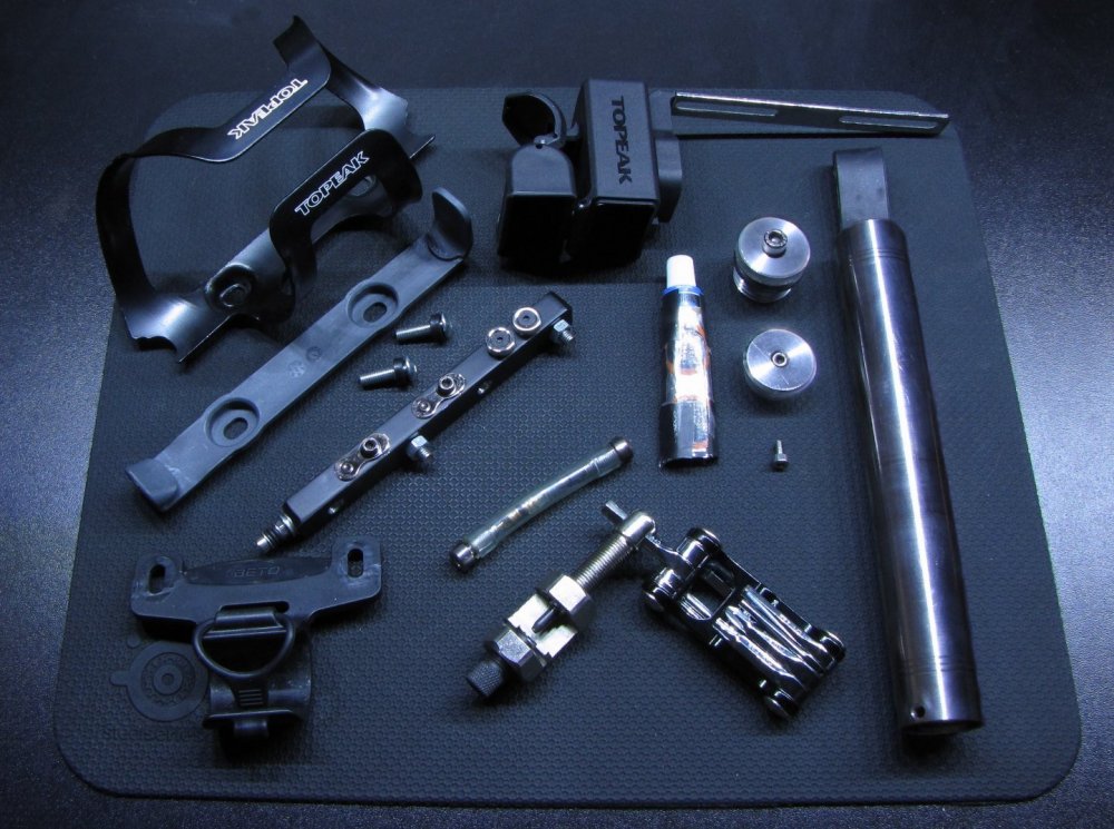 Dlatego chciałem trochę posegregować swój sprzęt serwisowy i zmieścić wszystko i upakować w jednym miejscu. Multitool od Topeaka - nie była to najtańsza opcja (bo taniej wychodzi kupno koszyka zintegrowanego z Ninja tool) ale zaoszczędziłem na tym, że mam małą tokarkę i zrobiłem sobie tubę/pojemnik na serwis.