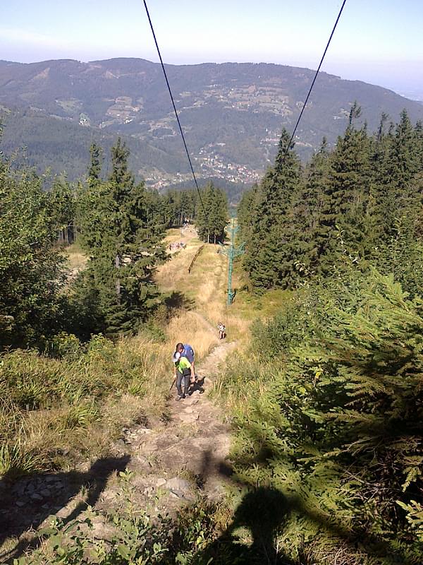 Wjazd na Skrzyczne od strony Ostrego i zjazd niebieskim szlakiem do Szczyrku.