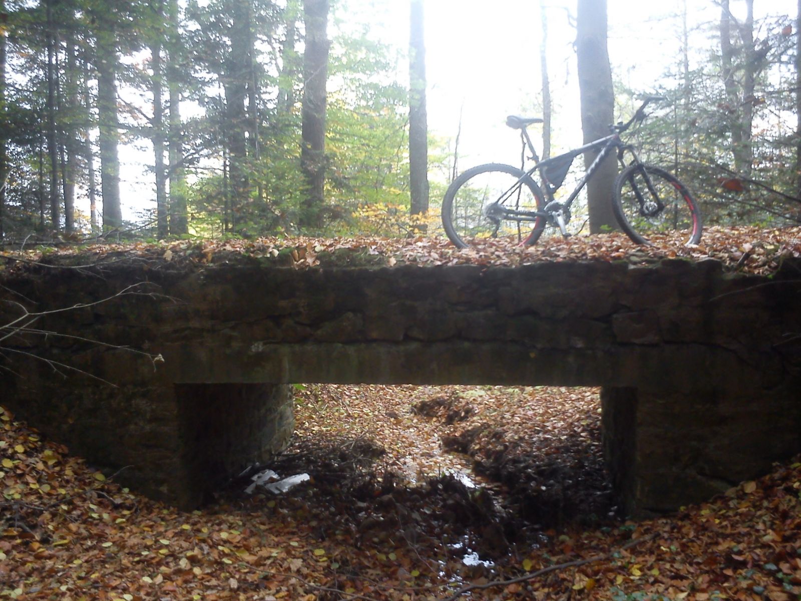 Kamienny most na szlaku starej kolejki w Świętokrzyskim parku narodowym. Piękna prawie idealnie prosta trasa prowadzi z niemalże Nowej Słupi do Świętej Katarzyny cały czas bukowym i jodłowym lasem. Chyba najfajniejsza trasa w okolicy i bardzo szybka.