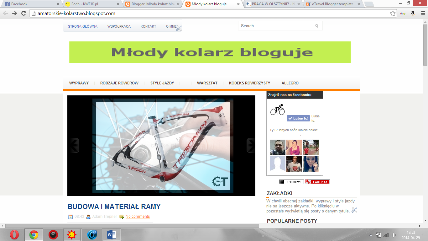 Młody kolarz bloguje