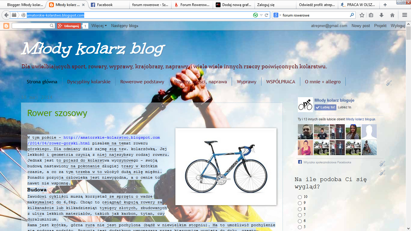 Dla uwielbiających sport, rowery, wyprawy, krajobrazy, naprawy, i wiele wiele innych rzeczy poświęconych kolarstwu. Tutaj nie można trafić przypadkowo, nie piszę o byle czym, nie piszę o tym co mi do głowy wpadnie. Choć jeśli ktoś już tu zajrzy, myślę, że pociągnę go za nogi i posadzę na jednośladzie. Zapraszam - http://amatorskie-kolarstwo.blogspot.com/