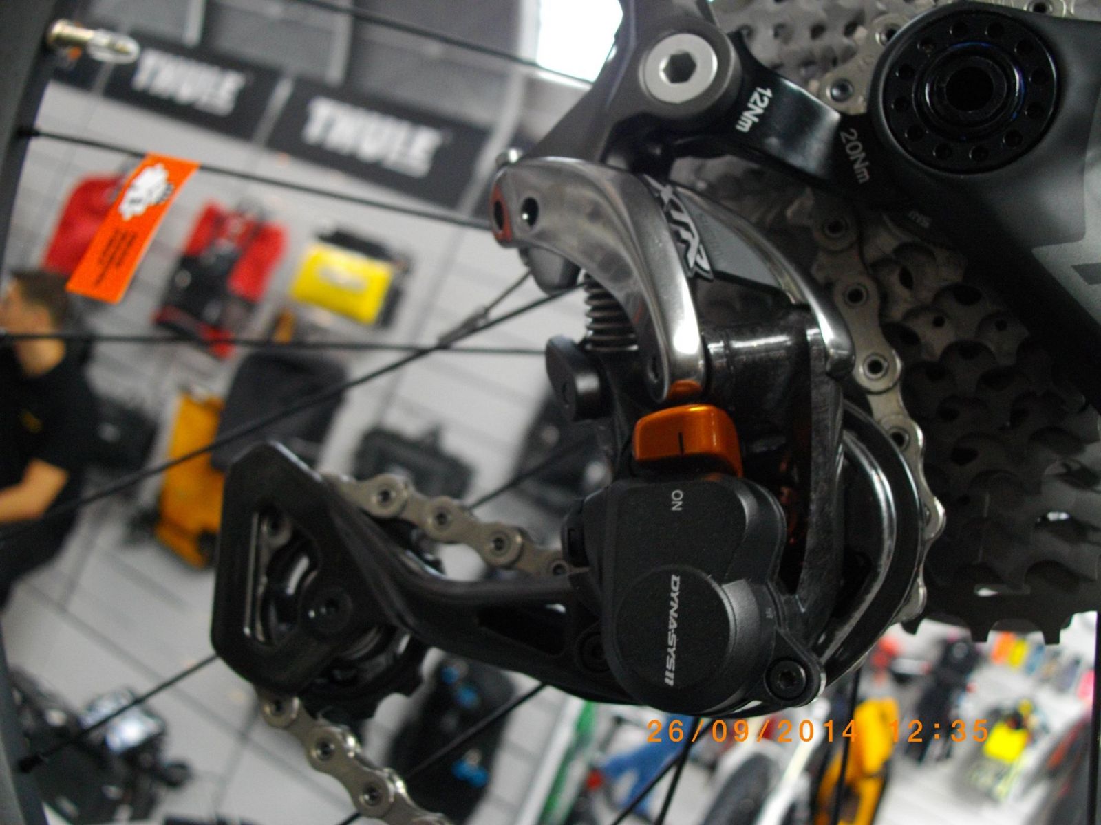 Tylna przerzutka to kamień milowy w historii Shimano, po raz pierwszy dwie rewolucyjne technologie – Di2 oraz Shadow RD+ - znalazły się w jednym komponencie. Konstrukcja Shadow RD+ stabilizuje przerzutkę, skutecznie uniemożliwiając obijanie łańcucha o dolną rurkę tylnego trójkąta. Zmieniona została również obsługa sprzęgła będącego sercem tej technologii – teraz można regulować jego działanie śrubą imbusową, bez konieczności rozkładania przerzutki.