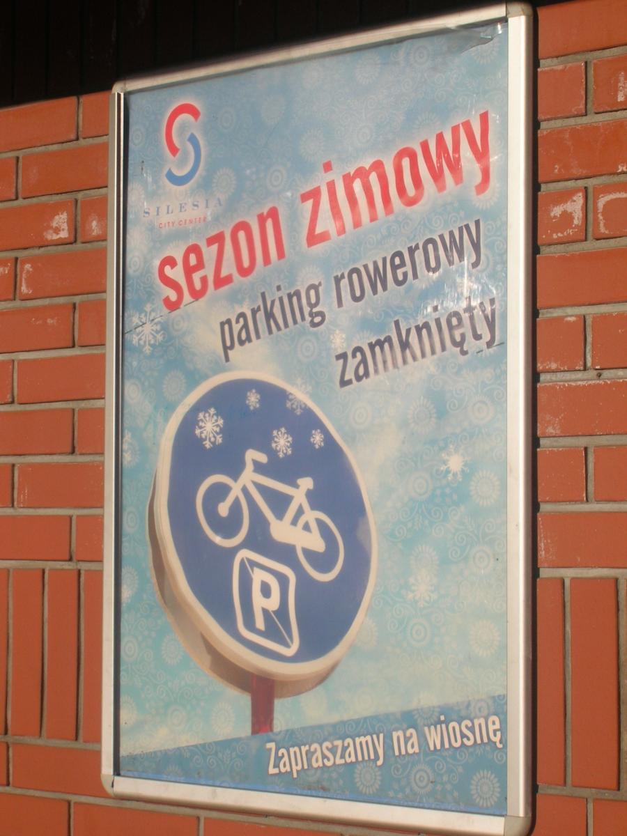 Strzeżony parking rowerowy przy SCC w Katowicach nieczynny do wiosny.