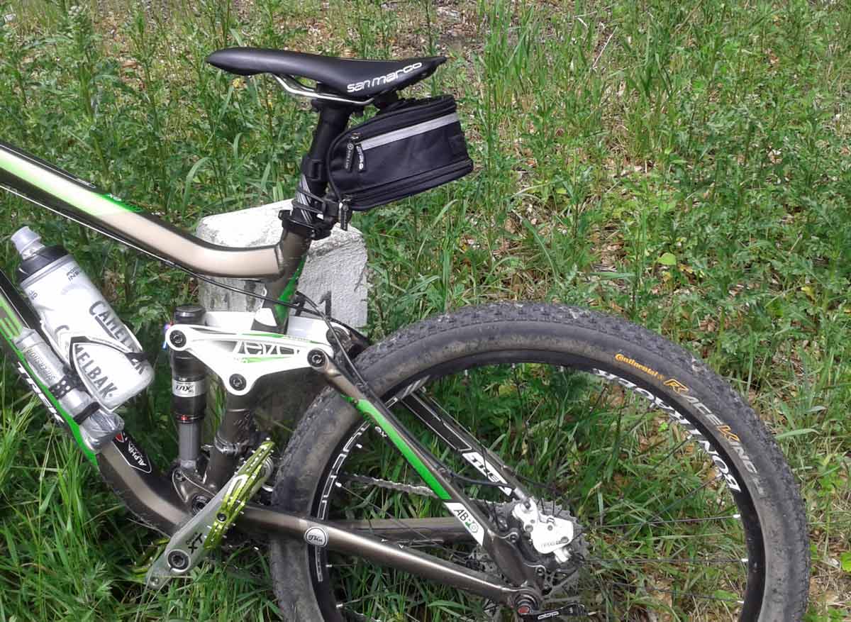 Na takie krótkie wypady do 30 km. postanowiłem ze zamiast plecaka będę sobie potrzebne rzeczy woził w tej torebce podsiodłowej.
