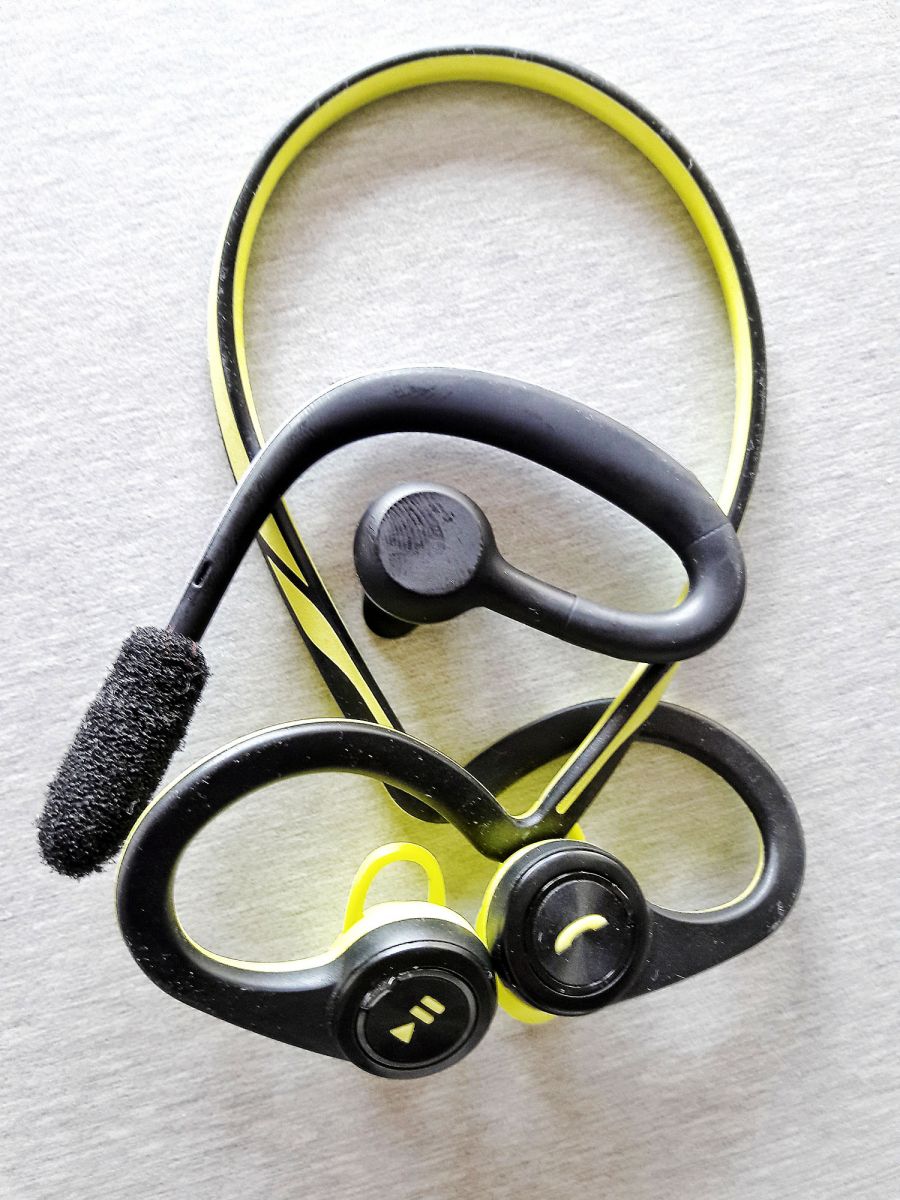 Plantronics BackBeat Fit do słuchania muzyki podczas uprawiania sportu oraz słuchawka Jabra Storm do prowadzenia rozmów. Bluetooth.