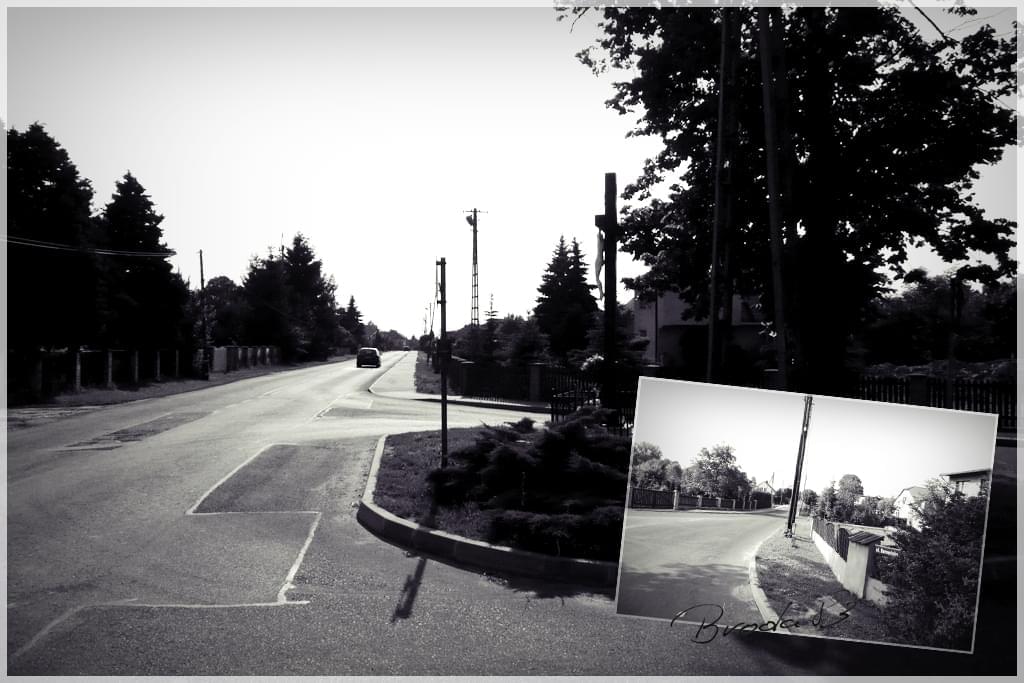 Chwile się jechało główną drogą do Gołkowic do momentu gdzie stoi krzyż, tam skręcałem w prawo - czerwony szlak - ul. Borowicka.