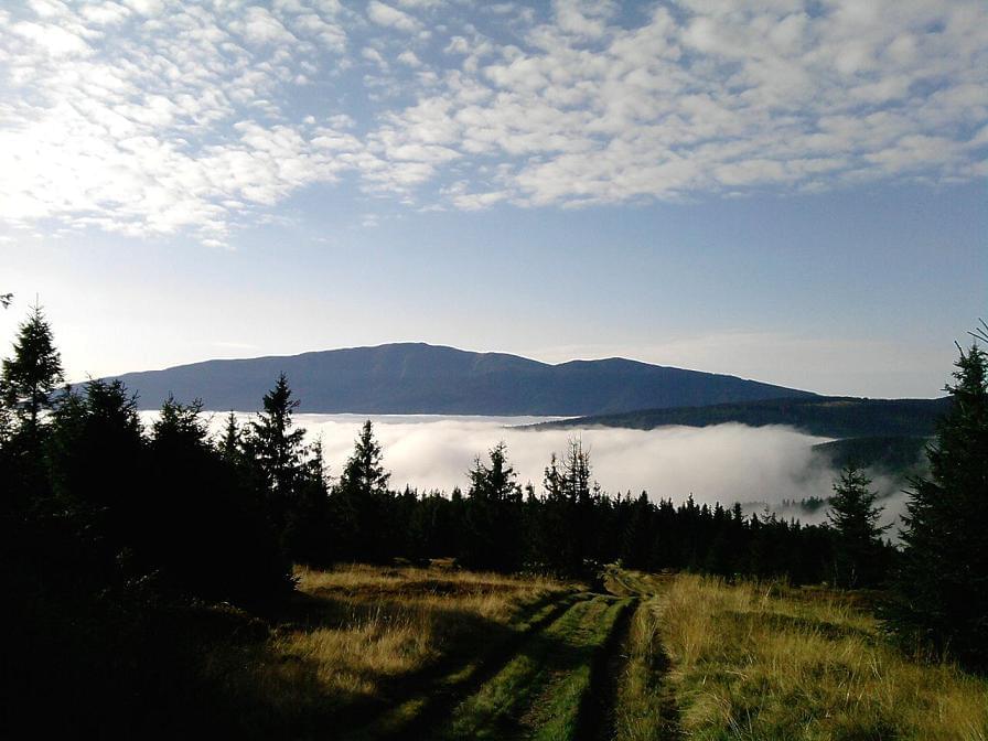Widok na Babią ze zbocza Jałowca.