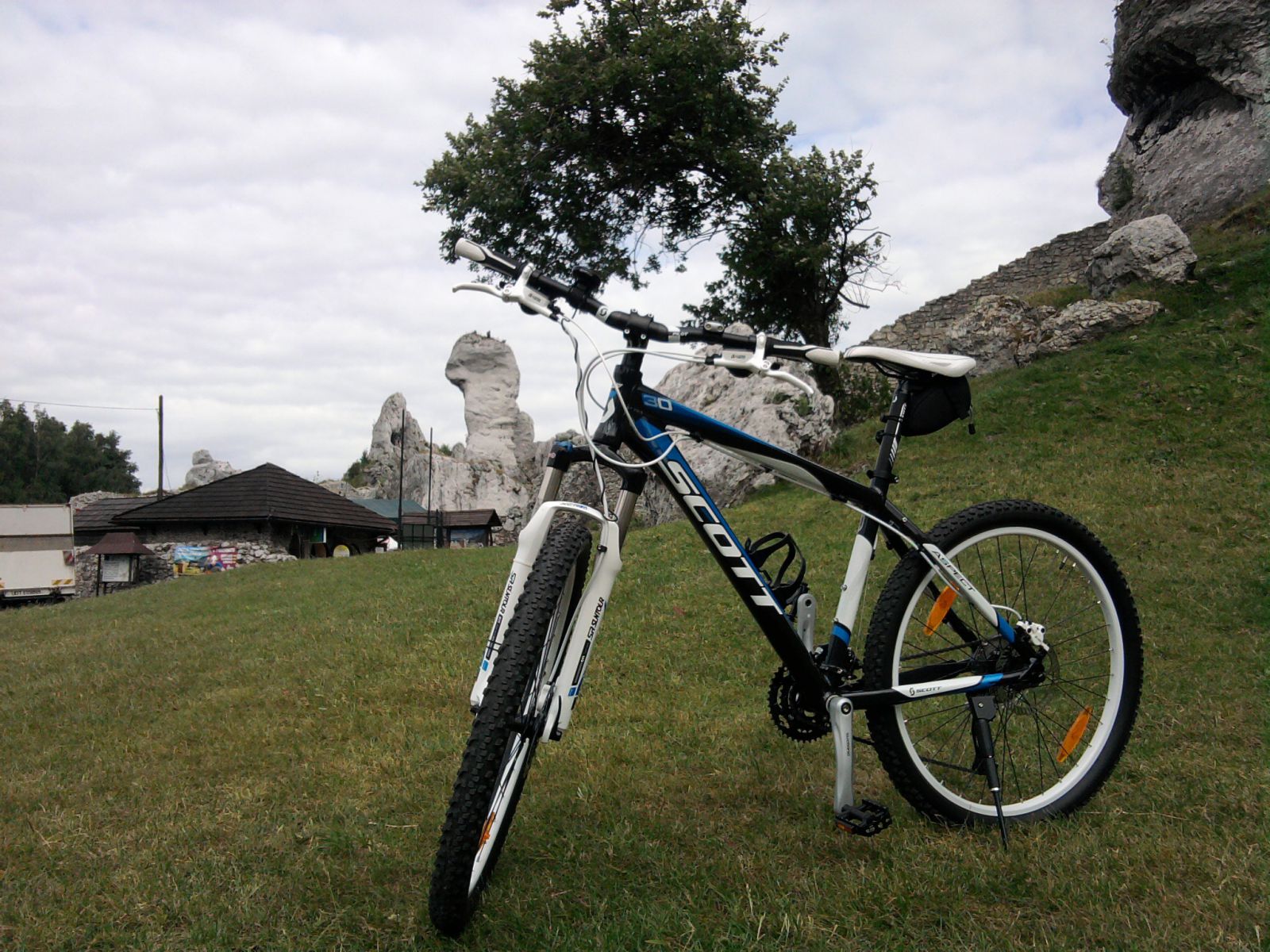 Zdjęcie zrobione na tle zamka w Ogrodzieńcu.