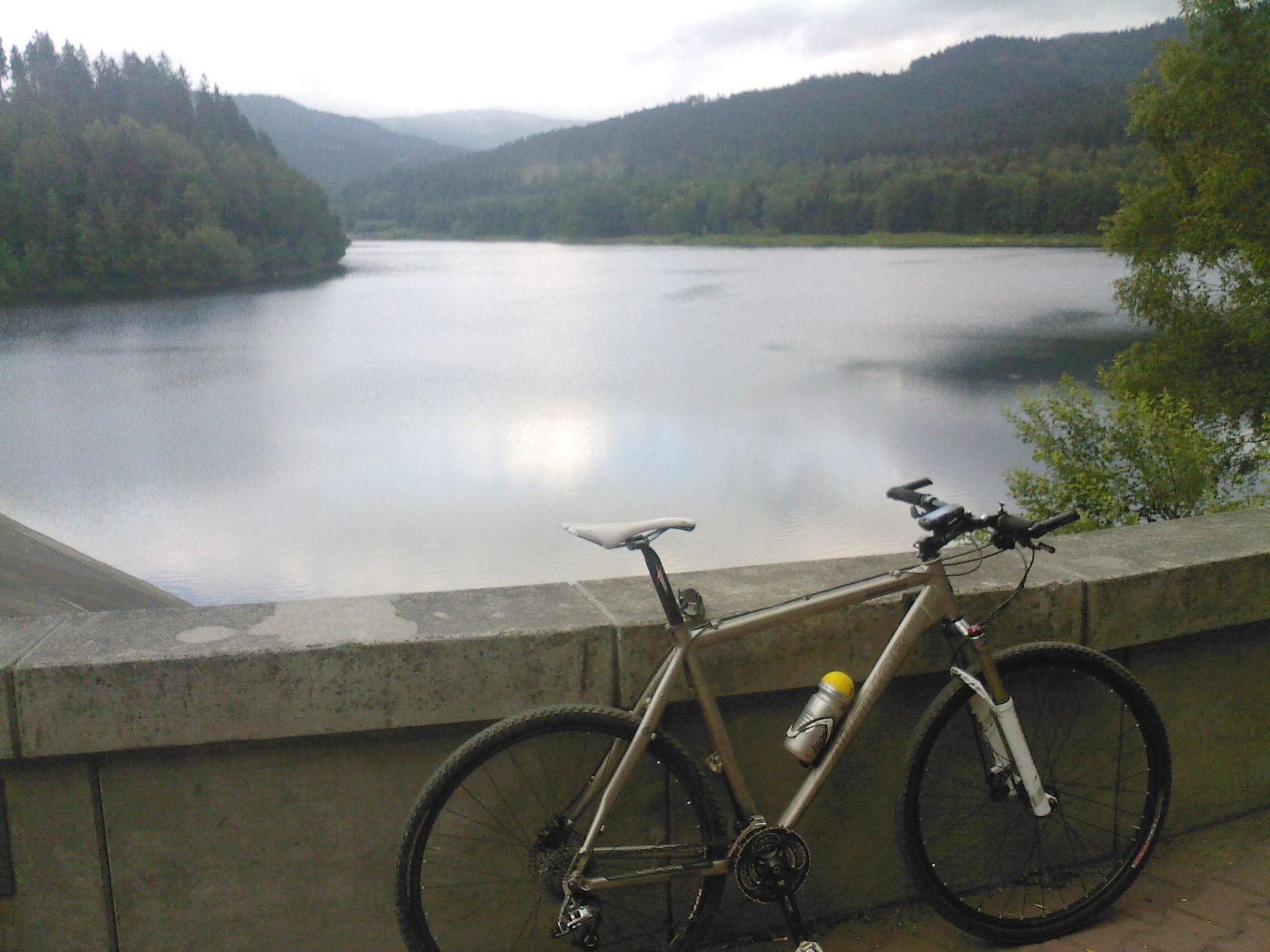 Szutrowa droga w dół ze schroniska Przysłop pod Baranią Górą to moja ulubiona w Beskidzie Śląskim. Po paru km zjazdu wpada się na wąską asfaltówkę i wzdłóż Białej Wisełki dojeżdza do tamy.