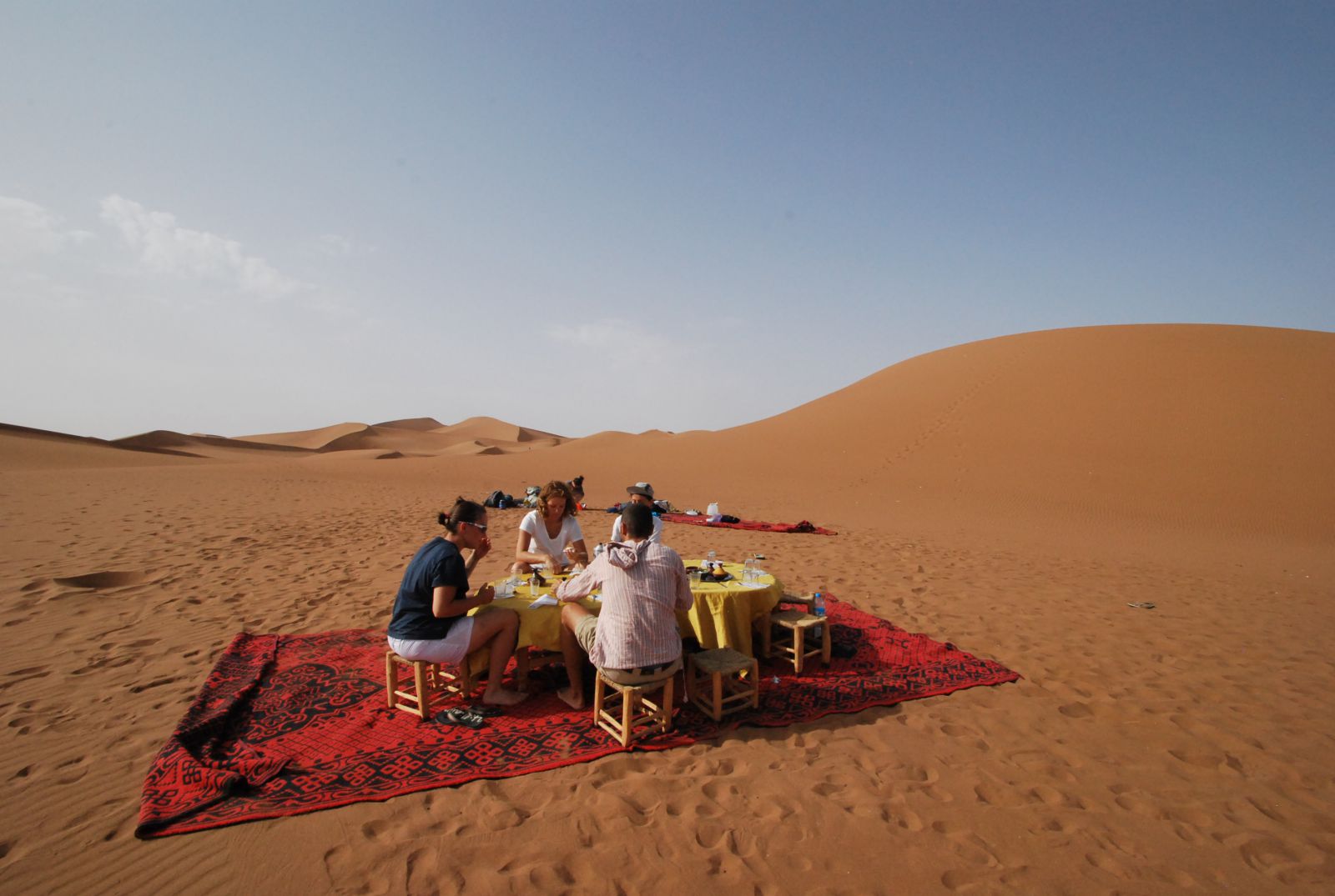 Śniadanie na piachu, miód miętowa herbata oliwa i marokańskie chlebki