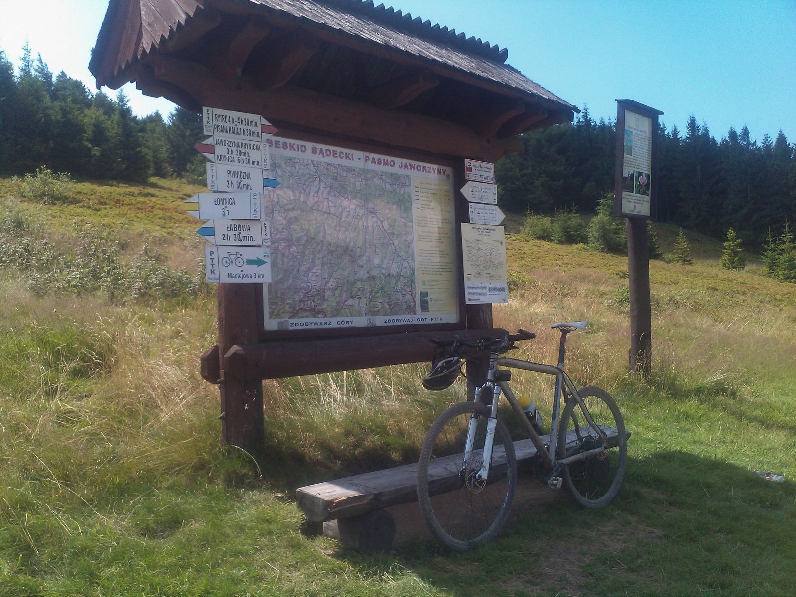 Na Hali Łabowskiej - połowa drogi z Jaworzyny do Rytra czerwonym szlakiem (grzbietem pasma).