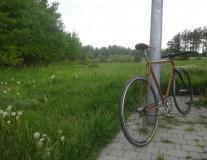 - Opis Jednonapędowiec złożony z założeniem jak najniższego kosztu, rower dojazdowy na uczelnie / po bułki.<br /><br />Rama uratowana ze złomu w przyzwoitym stanie, była upaćkana jakąś smołą ale wszystko doczyszczone i odmalowane, bez wygięć, z niegłęboką warstwą rdzy.<br /><br />Części oczywiście budżetowe, ale i bez przeginania, jest tak jak chciałem - prostota i niezawodność.<br /><br />Stan na rok 2016: rowerowi przyda się poprawa lakieru i naklejki ochronne co by już tak nie odchodził, zmiana owijki na brązową pod kolor i jakiś zliczacz bezprzewodowy co by przewody nie psuły prostoty roweru.