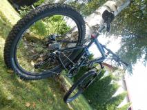 - Opis Nareszcie po roku udało mi się zakończyć budowę roweru. UFFFF!!!! Jest to mój pierwszy rower jaki złożyłem sam od A do Z. Najbardziej pracochłonne było kompletowanie sprzętu, to dziesiątki godzin przed kompem na Allegro w poszukiwaniu odpowiednich części a i tak nie obyło się bez zwrotów, np. przednia przerzutka. Niestety uparłem się na napęd 3x10 a mogłem 2x10 i nie było by problemu, dlatego zamiast dedykowanej do tego napędu przerzutki Sram X9 jest Schimano Deore XT. Pierwszą nabyłem ramę Schwinn Rocket 88 i oddałem ją kumplowi do polakierowania. Najdłużej polowałem na dumper. Raz kupiłem na Allegro, to mi nie przysłali bo sprzedali :(, drugim razem wziąłem udział w licytacji i też nie udało się (zapomniałem się zalogować, SIC!!!), za trzecim razem dumperek był mój!!! Trzeba było jeszcze tulejki załatwić, pomogła firma ProShox, tulejki przybyły w poniedziałek 23.08.2013 i w ten pamiętny dzień odbyła się dziewicza jazda. Rowerek został skręcony jak należy, wszystkie śrubki kluczem dynamometrycznym (zaopatrzyłem się we wszystkie potrzebne narzędzia) z odpowiednią siłą, oczywiście poza supportem i kasetą, którą założyli mi w serwisie podczas skracania przewodów hamulcowych. Wrażenia z jazdy niesamowite, poprzednio też miałem fulla ale 15-to letniego, więc różnica ogromna. Zawieszenie działa płynnie (mam pompkę do amorów), wszystko wyregulowane pod własne upodobania. Na asfalcie manetki blokady amorów CYK i rowerek sunie bezgłośnie. Wszystko działa perfekcyjnie. Uważam, że dobrze wydałem pieniądze, jak by nie było nie małe, dlatego radość ze sprzętu jest jeszcze większa. Jedyne co, to waga. Chciałem osiągnąć nie więcej jak 11kg, wyszło 13kg ale uważam, że jak na fulla, to i tak dobry wynik. Pozdrawiam wszystkich roweromaniaków!!!