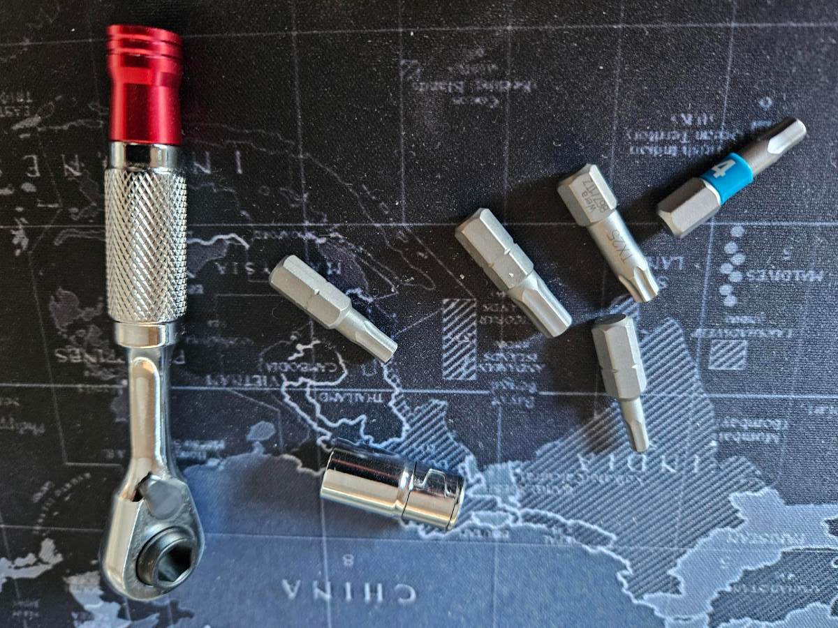 Coś podobnego do tego topeak poskładałem... Grzechotka 72T z gniazdami na bity 1/4" i szeciąkątem za niecałe 15zł + bity Wera hex plus 3, 4 i 5mm oraz T25 z aledrogo po 5zł/szt. Do tego wożę łyżki, które jeszcze mnie nie zawiodły od Lezyne (XL Tubeless), kupione kiedyś w BD za ~20zł i pompkę ToPump Pro (~120zł z ali).4 punkty