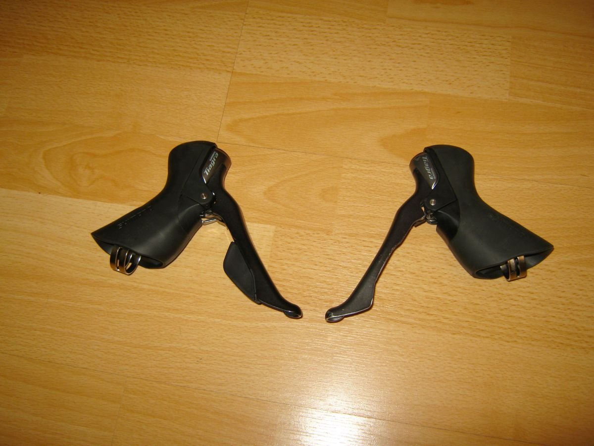 11. Bardziej w ramach ciekawostki a nie jakaś wymyślna przeróbka komponentu. Kupiłem lewą klamkomanetkę Shimano Tiagra ST-4700, z uszkodzonym mechanizmem zmiany przełożeń. Dla mnie lepiej - bo ma działać z napędem 1x10, więc wada stała się dla mnie zaletą (niska cena zakupu). Wywaliłem co nieco - jakieś 76g - komplet klamkomanetek zamiast 499 waży teraz 423 gramy. Jest ok Swoją drogą klamkomanetki z następujących po sobie roczników i widać różnicę w malowaniu głównej dźwigni. Byłem pewny, że wygląd jest identyczny przez cały czas produkcji danej serii, ale jak widać myliłem się...