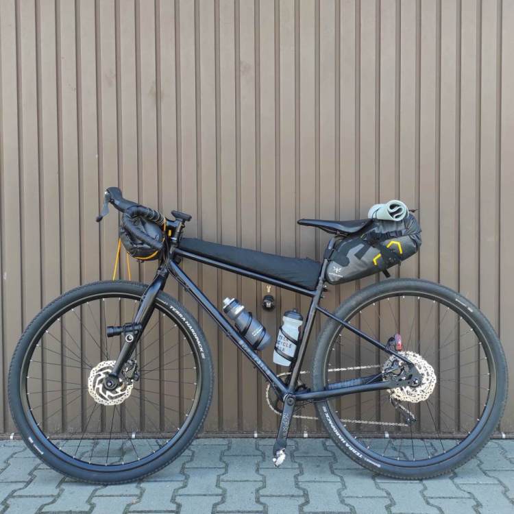 Dokonałem roszady w garażu. Muirwoods, a.k.a. mJurek, został ograbiony z barana i dostał z powrotem prostą kierownicę, tę którą mu projektant przewidział, i powrócił do formy stalowego wicieczkowca-mieszczucha walcem rozjeżdżającego wszystko. Niszę żwirową zasiedlił Timur, zbudowany z baranich przeszczepów z mJurka i tytanowo-plastikowego framesetu od Waltly, krojonego pod moje wymagania. Waltly - gorąco polecam. Stal, nie stal... Rurki metalowe i w dodatku niegliniane, więc chyba można tutaj. -