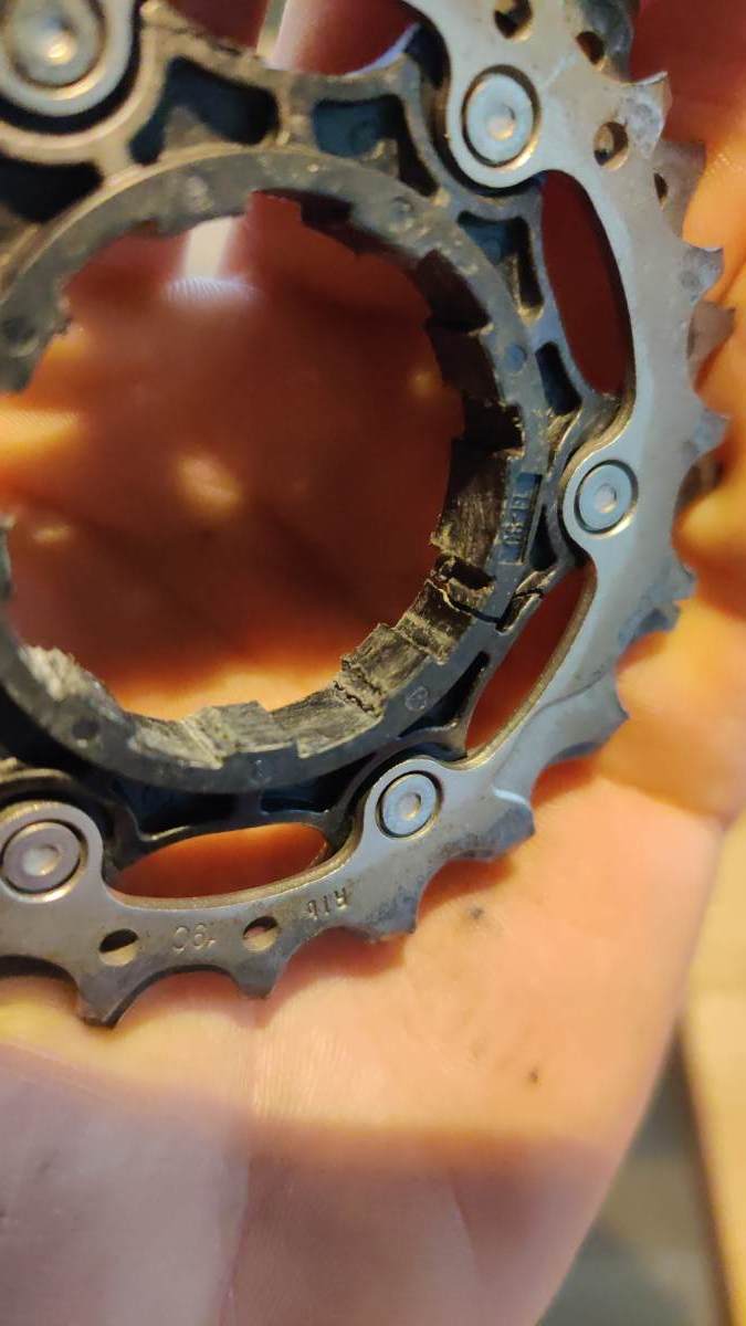Normalnie rozregulowane było. Tarcze 50ke obmieliło na gładko to na małej jeździłem. A że cisnąć trzeba no to napęd wąchał najwięsze przekosy, to i zeżarło. -