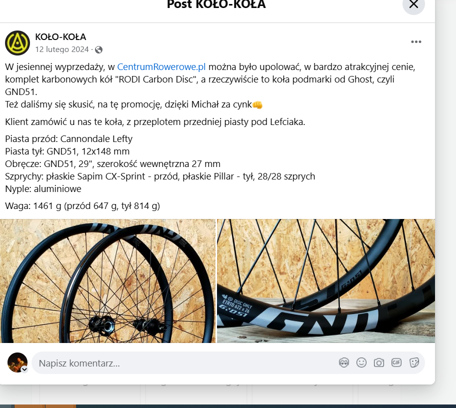 Co do chisela to jeden przykładowy sklep był z Wrocławia, drugi z Częstochowy. Można rozważyć podjechanie, Łódź w środku Polski więc wszędzie blisko Co do NS to jak wyżej -7Anna złożyła wniosek o upadłość, co z tego wyniknie nikt nie wie na pewno. Gwarancja gwaracją ale np. dokupienie wahacza po uderzeniu w kamień itp. Inne pomysły: https://www.centrumrowerowe.pl/rower-mtb-corratec-revolution-ilink-pro-pd50400/?v_Id=270422&utm_source=google&utm_medium=cpc&gad_source=1&gad_campaignid=19529637099&gclid=CjwKCAjw6P3GBhBVEiwAJPjmLmw10o6oBin1HNPYDDMGqQ1A7vAjXXr4CCmK38lBNPW3MYRYQsFCAhoCk9sQAvD_BwE https://www.centrumrowerowe.pl/rower-mtb-corratec-revolution-ilink-sl-pro-team-pd48871/?v_Id=262997&utm_source=google&utm_medium=cpc&gad_source=1&gad_campaignid=19529637099&gclid=CjwKCAjw6P3GBhBVEiwAJPjmLgAq6qvBjntTBZhCrCu9TFXnxQPZMyFgi_DrSLAZh7nLZ3o5iotcdhoCP-4QAvD_BwE Marka z długimi tradycjami, przez pewien czas mało widoczna. Sama rama z tego co pamiętam powinna być dość lekka, @marcin_ostrów składał rower na ramie fs tej firmy, może się podzieli wrażeniami. https://veloshop.pl/p/pl/bmc-fourstroke-two-lt-m-580 https://www.mount7.com/trek-top-fuel-9-gen-4-2025.html - tu już zagranica i wysyłka na 100% (ale sprawdzona w poprzednich miesiącach przez przynajmniej 2 forumowiczów) -