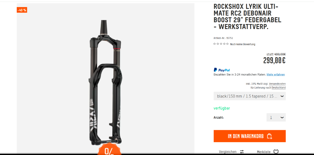 Lyrik Select 150mm 208EUR https://www.bike-components.de/de/RockShox/Lyrik-Select-RC-DebonAir-Boost-29-Federgabel-Werkstattverpackung-p95396/?v=46127-diffusion-black