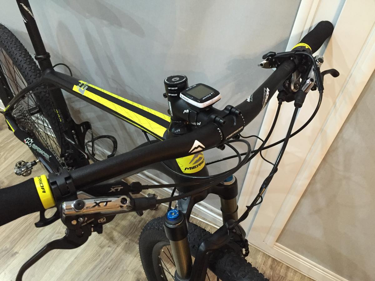 To ja tez wstawię fotki swojego nowego nabytku - Merida Big Seven 800 '15 Custom. Rower seryjny lekko zmodyfikowany, na wstępie od nowości wymienione fabryczne hample Deore M615, manetki SLX, przednia przerzutka Deore M616 i tylna przerzutka SLX na podzespoly z grupy XT. Z czasem wymieniona na pewno zostanie korba, najprawdopodobniej na jednorzędową XT 34T lub 36T. Wtedy tez zniknie przednia przerzutka i lewa manetka. Niewykluczone rowniez, ze w takiej sytuacji tylna przerzutka XT zostanie wymieniona na Srama, a prawa manetka XT na gripshifta 10rz Sram. Myśle rowniez o przepleceniu kół na piasty XT ale to juz fanaberia... Uprzedzając zarzuty - tak, osłona kasety mnie tez denerwuje i zostanie zdjęta -