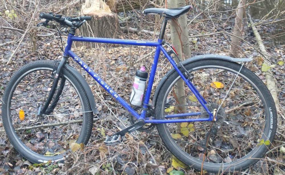 Alsew Napisano 29 Stycznia 2022 Napisano 29 Stycznia 2022 (edytowane) No to wrzucę mojego kochanego cr-mo retro ulepa. Rower do zastosować gravelovych. Używany całorocznie głównie szutry i leśne ścieżki, czasami wjedzie głębiej w las, czasami zawiezie tyłek do roboty czy przywiezie bułki do domu. Rower jest pełen druciarstwa ale działa wyśmienicie. Rama : Gary Fisher Rangitoto Cr-mo z 1995r pod hamulce typu canteliver i stery 1i1/8. Dzięki dorobionej przelotce przymocowanej do śruby od zacisku sztycy idealnie działają v-ki. Widelec: Optima full cr-mo wysokość oś-korona 405mm (oryginalnie do tej ramie był montowany amortyzator o wysokości 420mm) Sztyca : Ventura cr-mo Koła : Kellys 27,5 z oponami Panaracer Comet 2,0 przód, Michelin Country Rock 1,75 tył Hamulce : v-ki full Deore - nie obyło się bez szlifowania prowadnic klocków tak by dopasować ich wysokość do kół 27,5 Napęd: 1x10, kaseta Deore 11-36, przerzutka XT, manetka Deore, korba Shimano 38t custom (z korby 48x38x28 odwiercony młynek a patelnia przy pomocy gumówki i kamienia szlifierskiego przerobiona na osłonę łańcucha. Prowadnica łańcucha dorobiona za starego mocowania od lampki - efekt łańcuch nie spadł ani razu przez 2,5tys km w gravelowych warunkach. Linia łańcucha bajka. Kierownica Accent Execute 680mm, mostek Uno 80mm, siodło jakiś zajechany już Author, chwyty sylicony Cube, pedały platformowe z pinami Author. Do tego dzwonek, koszyk na bidon, pełne oświetlenie i pełne plastikowe błotniki z dorobionymi prętami i wyszlifowane w wielu miejscach tak by nie kolidowały z hamulcami i mieściły opony. Kocham go! 🥰 Edytowane 29 Stycznia 2022 przez Alsew 8 Cytuj