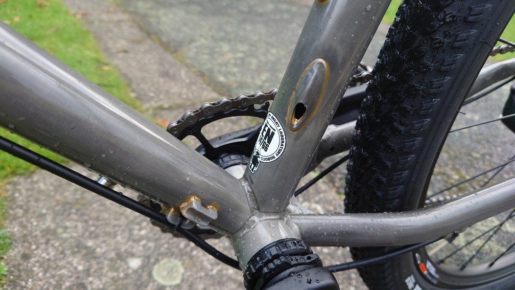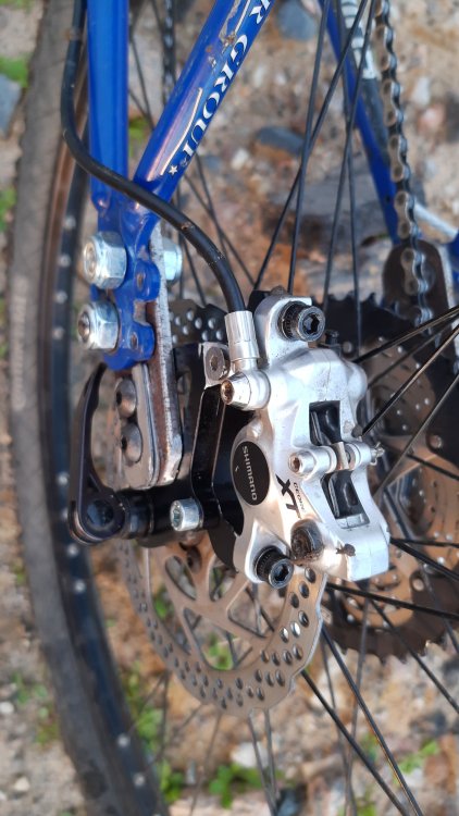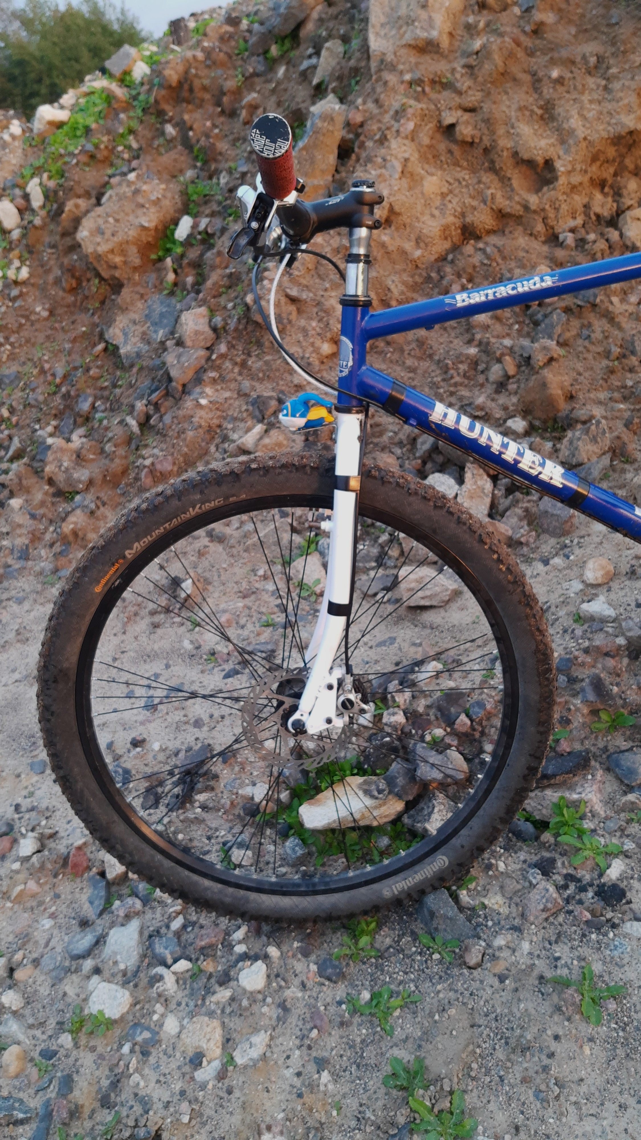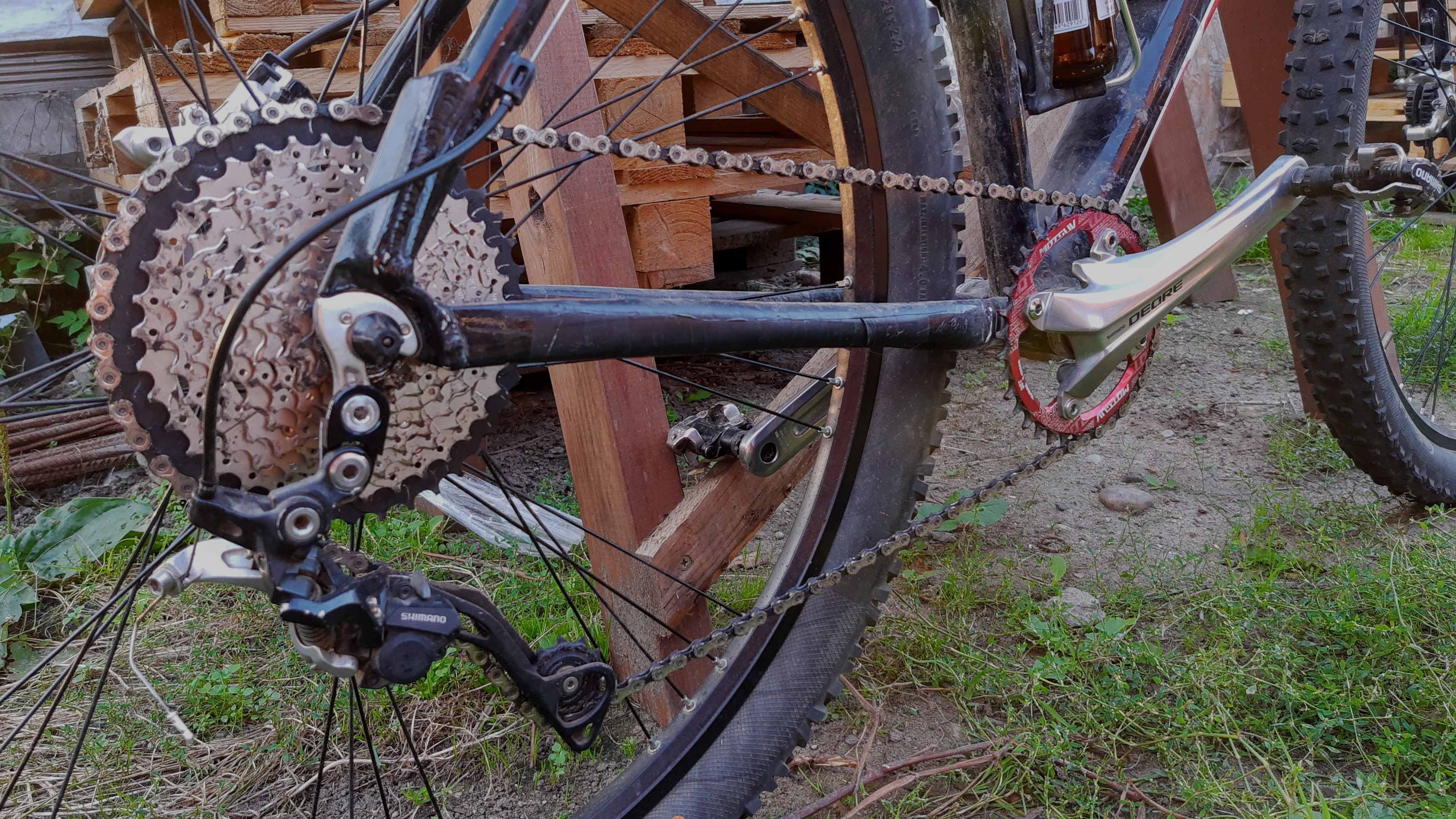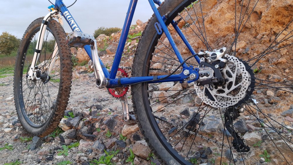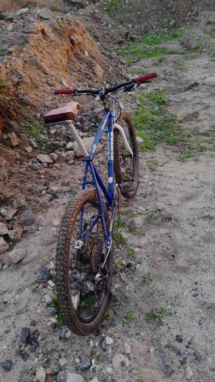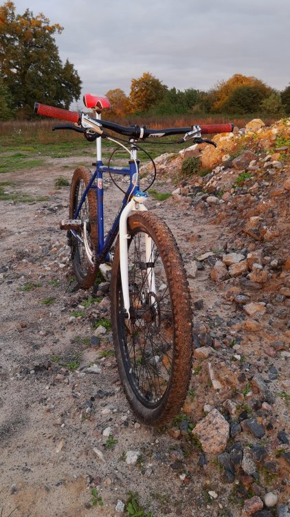 Ta odpowiedź cieszy się zainteresowaniem. Sobek82 Napisano 6 Października 2020 Ta odpowiedź cieszy się zainteresowaniem. Napisano 6 Października 2020 Masz rację milordzie, pandemiczne czasy nastały, nic nie można sensownego od ręki dostać. Przyszło mi komunijnego 26'era przekabacić na 29'era, powstał w ten sposób Hunter Barracuda, z wdelcem 1" od roweru 28", z dorabianym chałupniczo mocowaniem IS pod heble tarczowe, oraz tylni trójkąt rozwarty siłą woli ze 130mm do 160mm i dorobienie mocowania haków z rometowskiego 29'era, całość poskręcana w stodole, w warunkach urągających homo sapiens. Łańcuch miał fabrycznie 116 ogniw więc dodałem 7 ogniw z 9s i dwie spinki Pozdrow'er Ps. waga klamota to zaledwie 15,6 kg 10 Cytuj