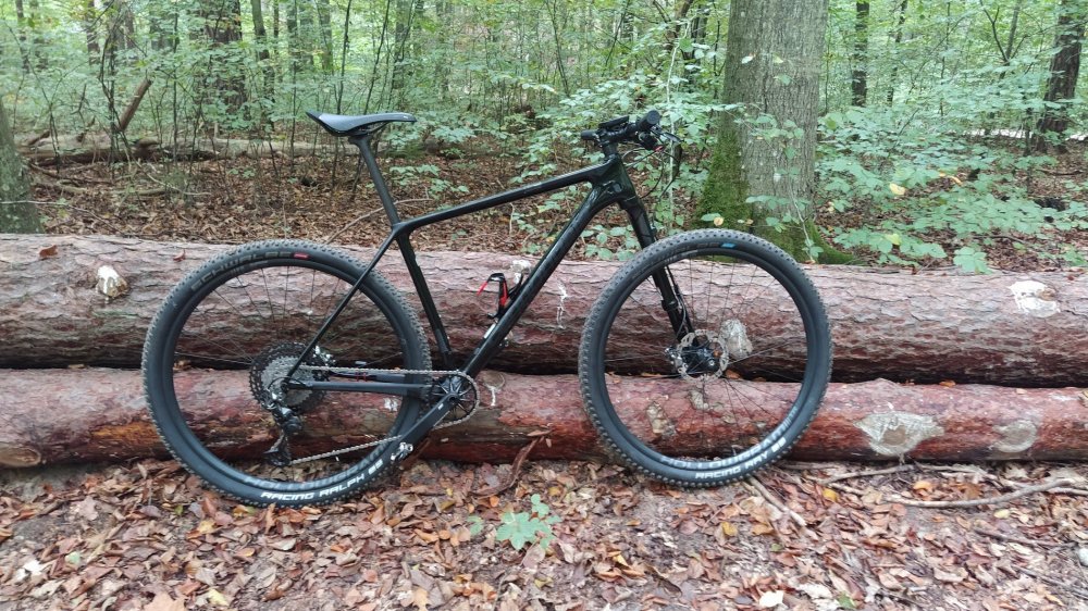 lester13 Napisano 6 Października 2020 Napisano 6 Października 2020 (edytowane) stał mi rower od roku więc postanowiłem dać mu nowe życie Z grubsza: - karbonowe koła Reynolds (opony z dętkami bo nie szło dostać dobrych gum pod mleko - co za czasy ) - hamulce, korba, przerzótki xtr - napęd 1x11, przednia tarcza 32 AbsoluteBlack, kaseta sunrace MX8 waga bez pedałów 8.93kg Jest jeszcze kilka pierdół do poprawy i może się uda zejść z wagą do okolić 8.5kg Edytowane 6 Października 2020 przez lester13 9 Cytuj