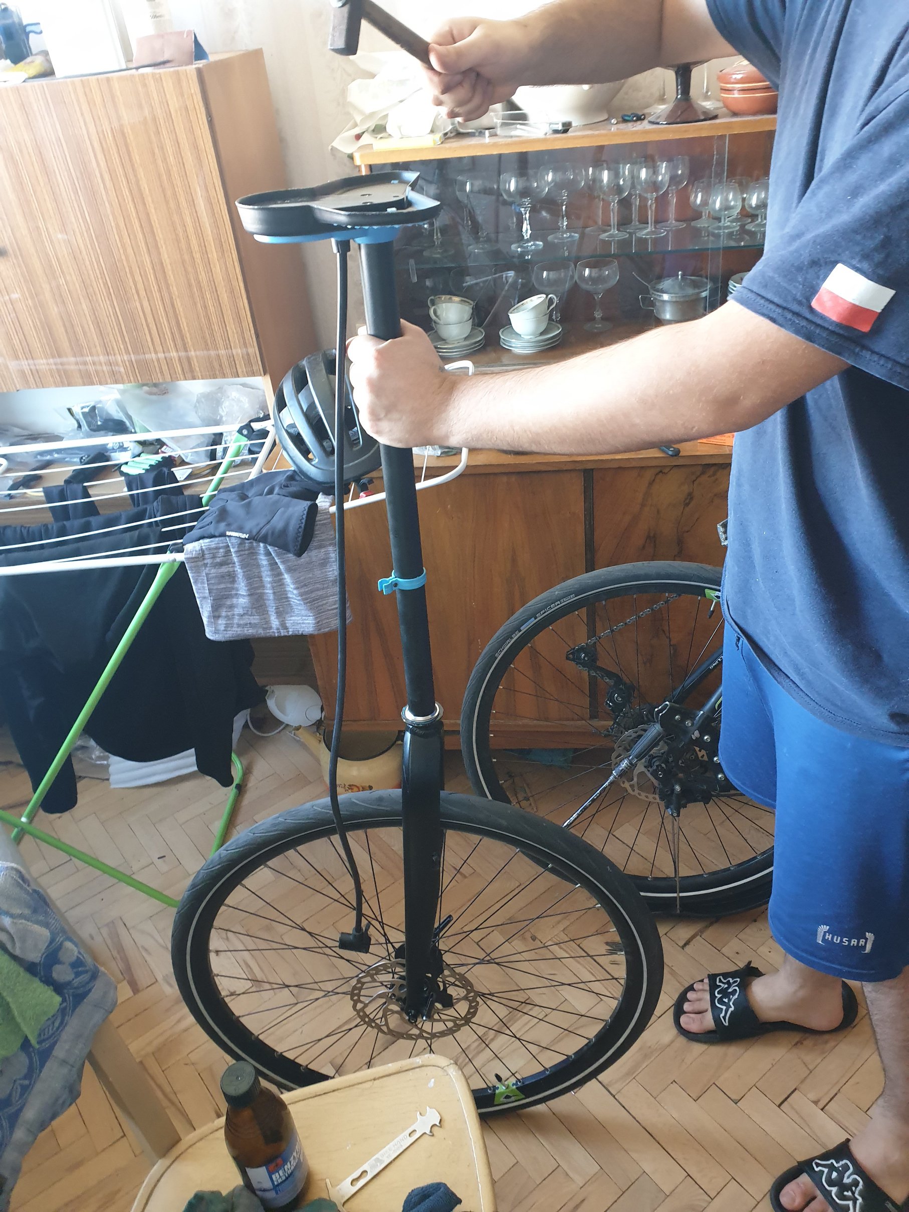 Mi kwarantanna przyśpieszyła tą zabawę. Robiłem klientowi rower, zabrakło części na które trzeba było poczekać, więcej pracy nie było, to zaczęła się zabawa z tym czymś. Kilka godzin zeszło. Z minusów? Wiertarka nieco za głośna.